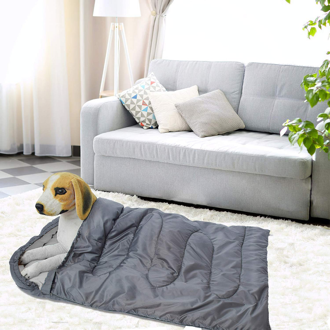 Q: Can I use the KUDES Dog Sleeping Bag indoors?A: Absolutely! The KUDES Dog Sleeping Bag can be used as a soft mat or bed for your pet on the sofa, floor, or in the backyard at home, providing comfort and warmth.