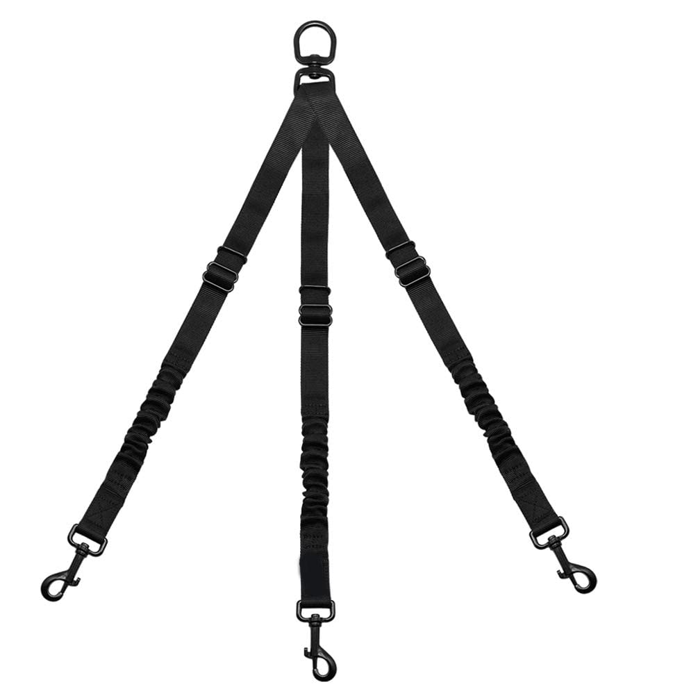 Kuntrona Nylon Dog Leash Coupler 3 Way No-Pull Pet Dog Lead Leashes No Tangle Bungee Three Dogs Leads Black L