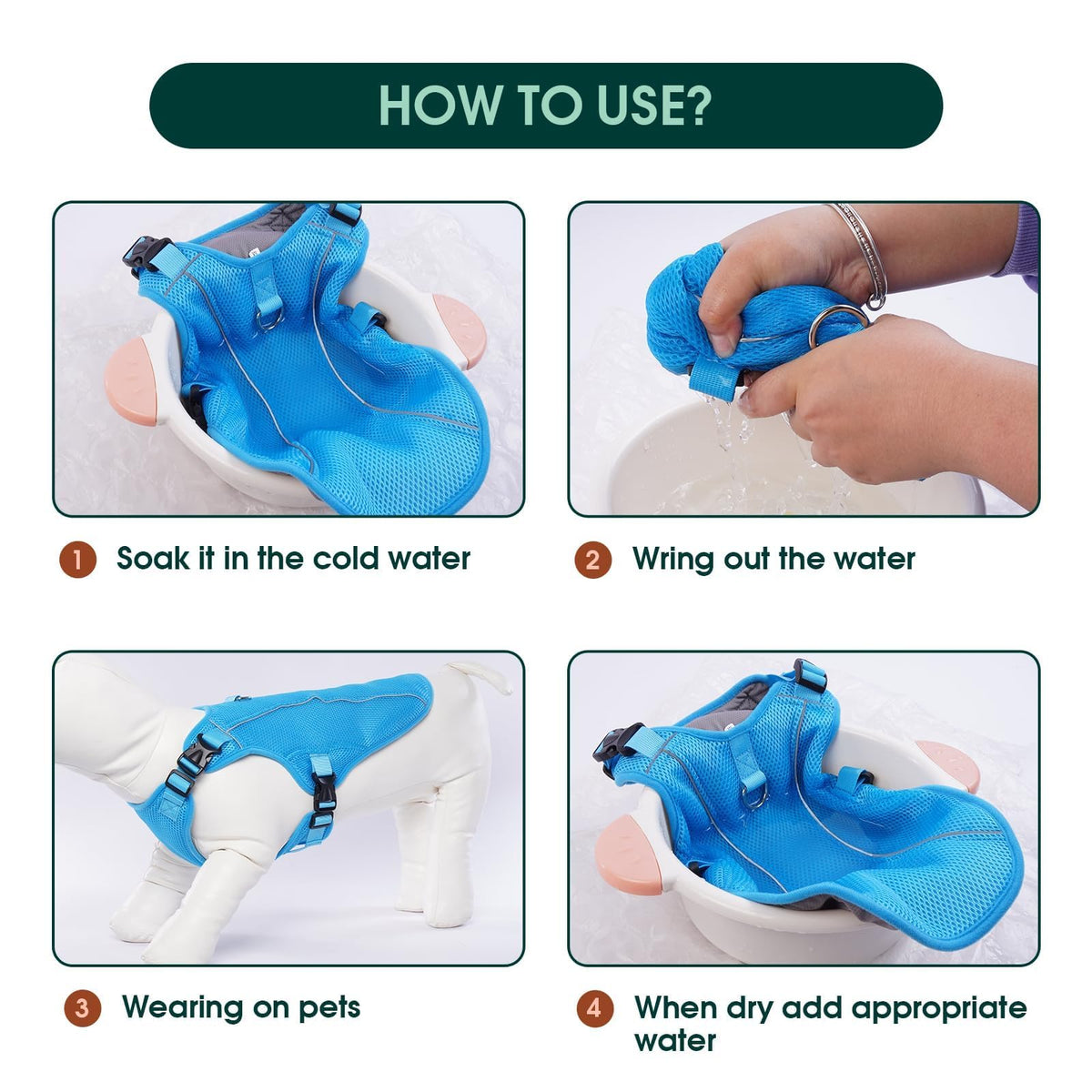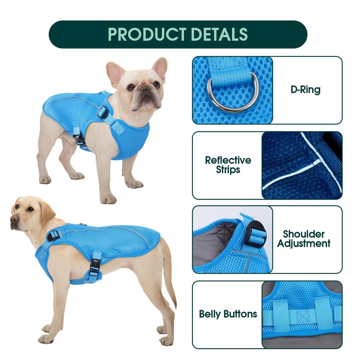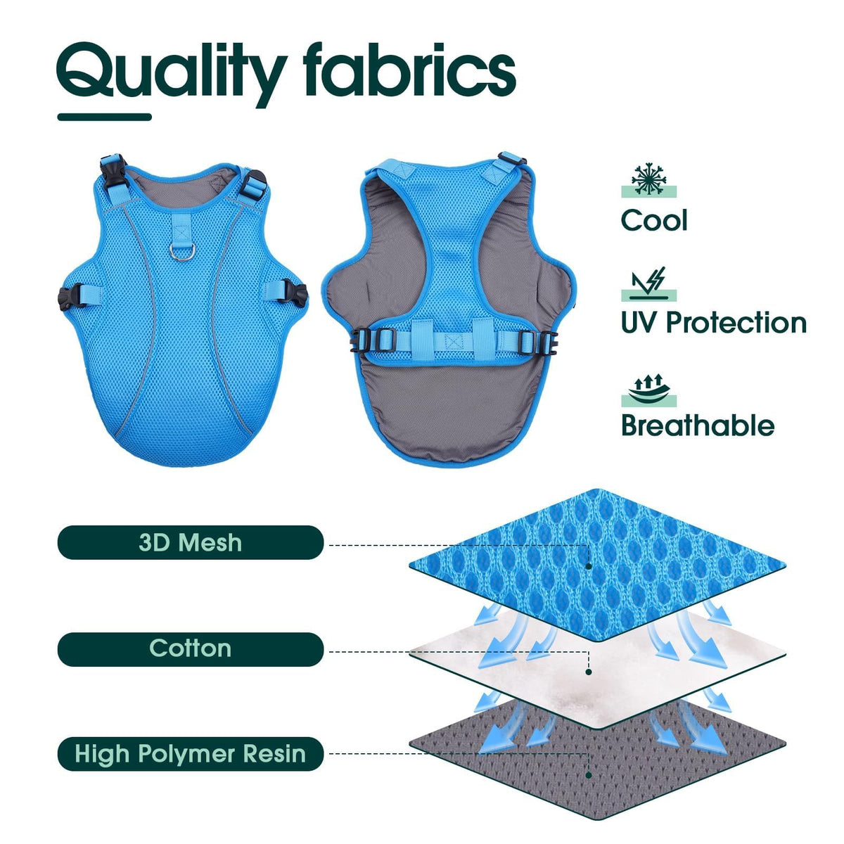 Kuoser Dog Cooling Vest Harness, Large Dog Cooler Jacket With Adjustable Buckle For Outdoor Beach, Hiking, Training Blue Xxl