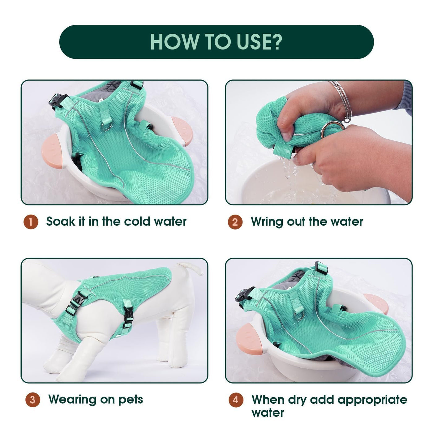 Kuoser Dog Cooling Vest Harness, Large Dog Cooler Jacket With Adjustable Buckle For Outdoor Beach, Hiking, Training Green Xxl