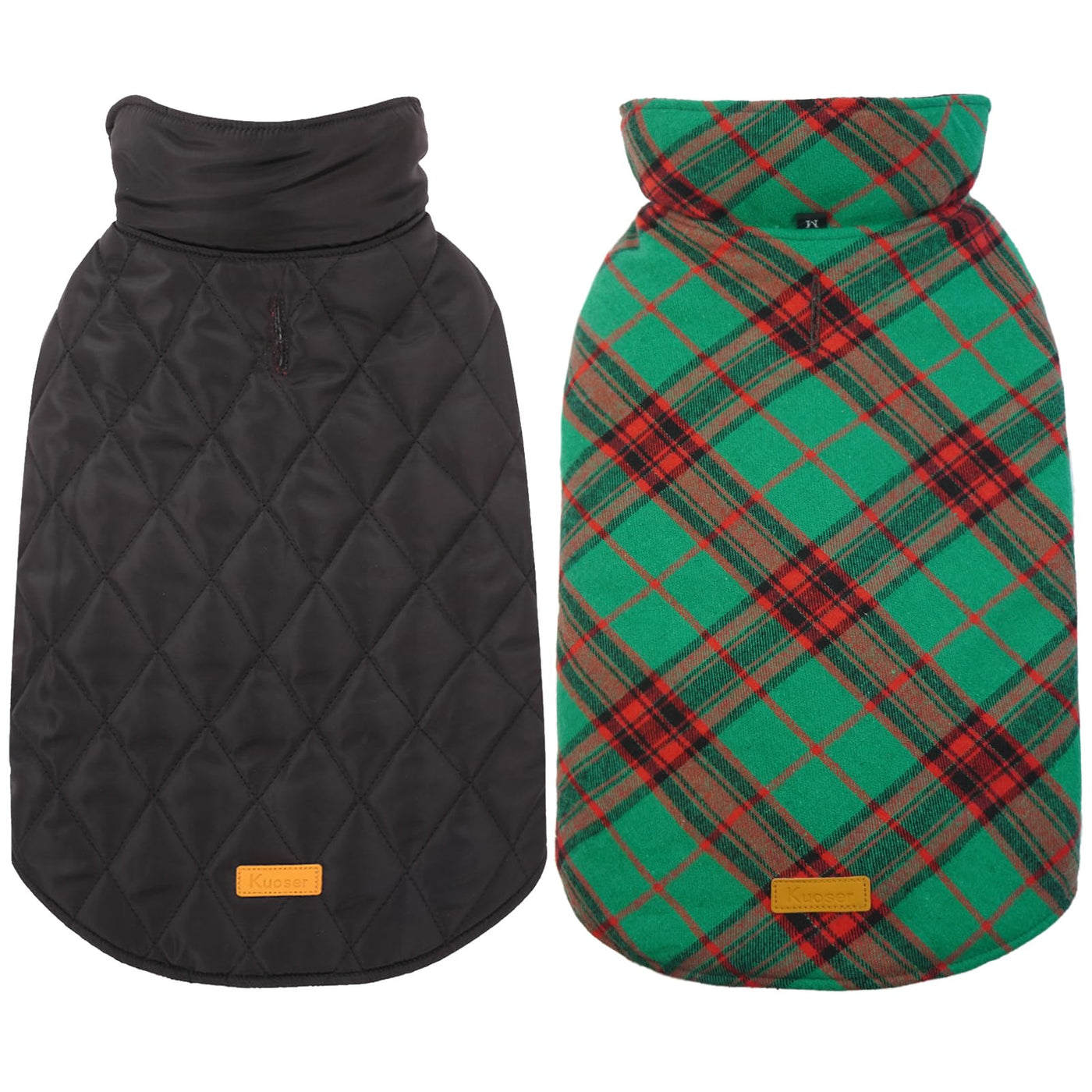 Kuoser Warm Dog Coat, Reversible Dog Jacket Waterproof Dog Winter Coat British Style Plaid Dog Clothes Pet Dog Cold Weather Coats Cozy Snow Jacket Vest For Small Medium Large Dogs Christmas Green L