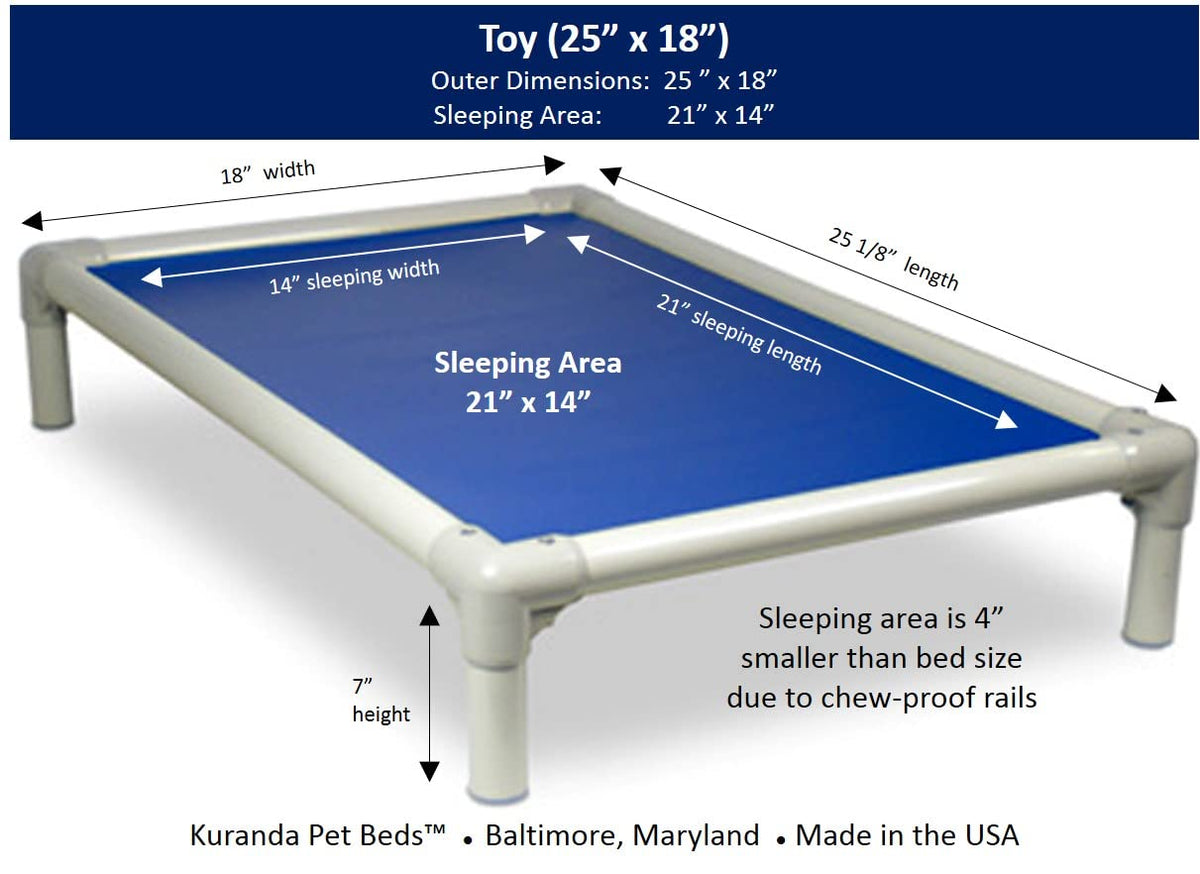 The original chewproof dog bed and still the best. Kuranda patented the Chewproof Dog bed in 1998 and we have improved our beds every year since then. Wide rails prevent chewing by larger breeds. Heavy duty fabric resists digging and supports up to 250