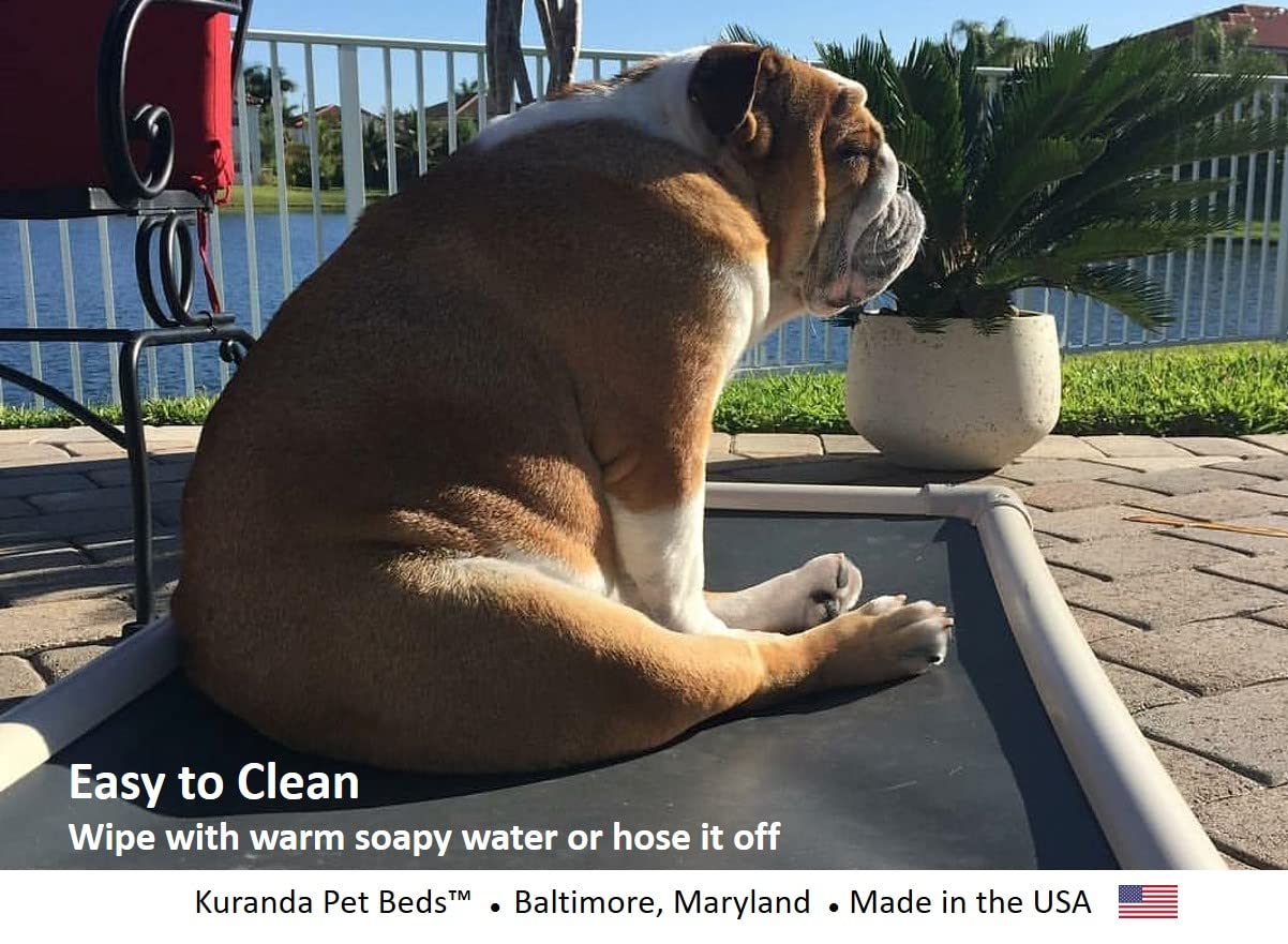 The original chewproof dog bed and still the best. Kuranda patented the Chewproof Dog bed in 1998 and we have improved our beds every year since then. Wide rails prevent chewing by larger breeds. Heavy duty fabric resists digging and supports up to 250