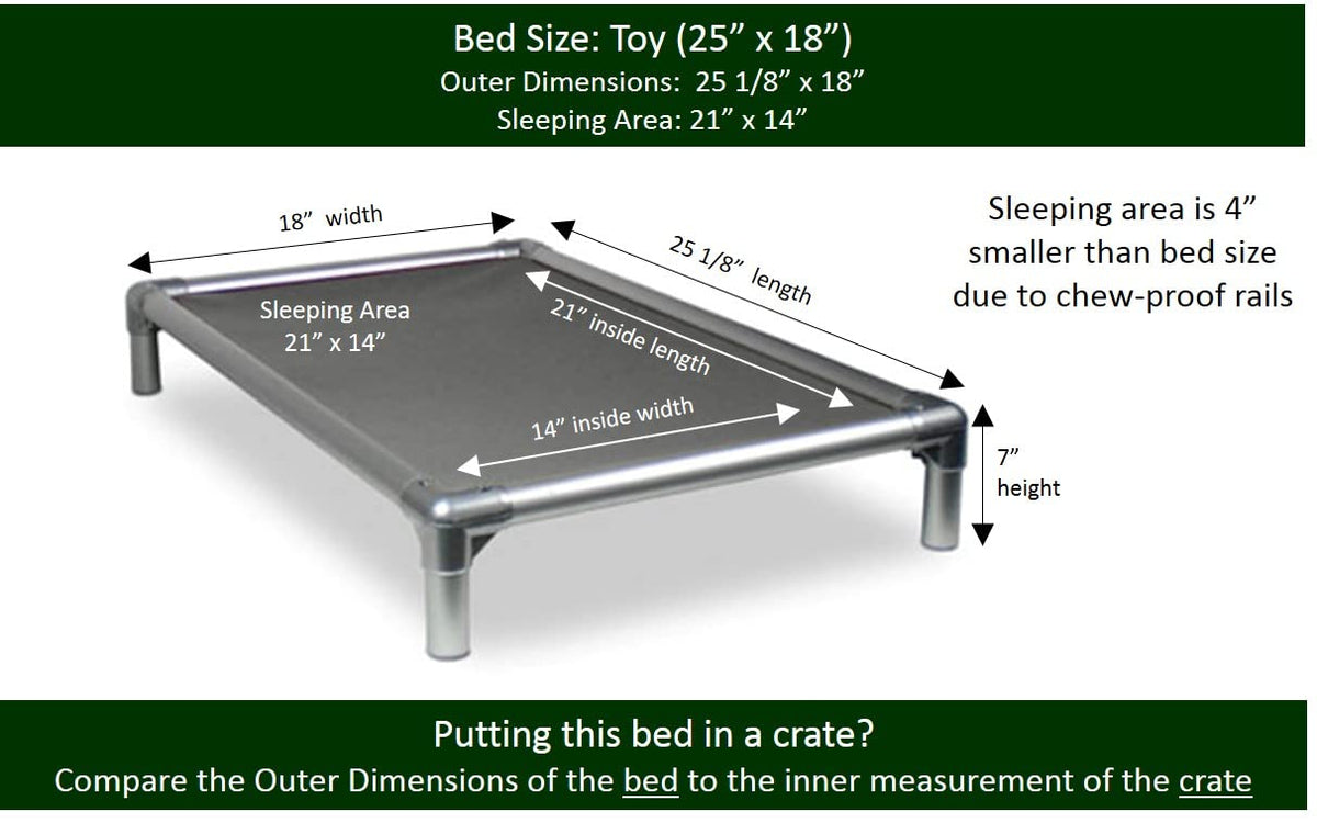 The original chewproof dog bed and still the best. Kuranda patented the Chewproof Dog bed in 1998 and we have improved our beds every year since then. Wide rails prevent chewing by larger breeds. Heavy duty fabric resists digging and supports up to 250