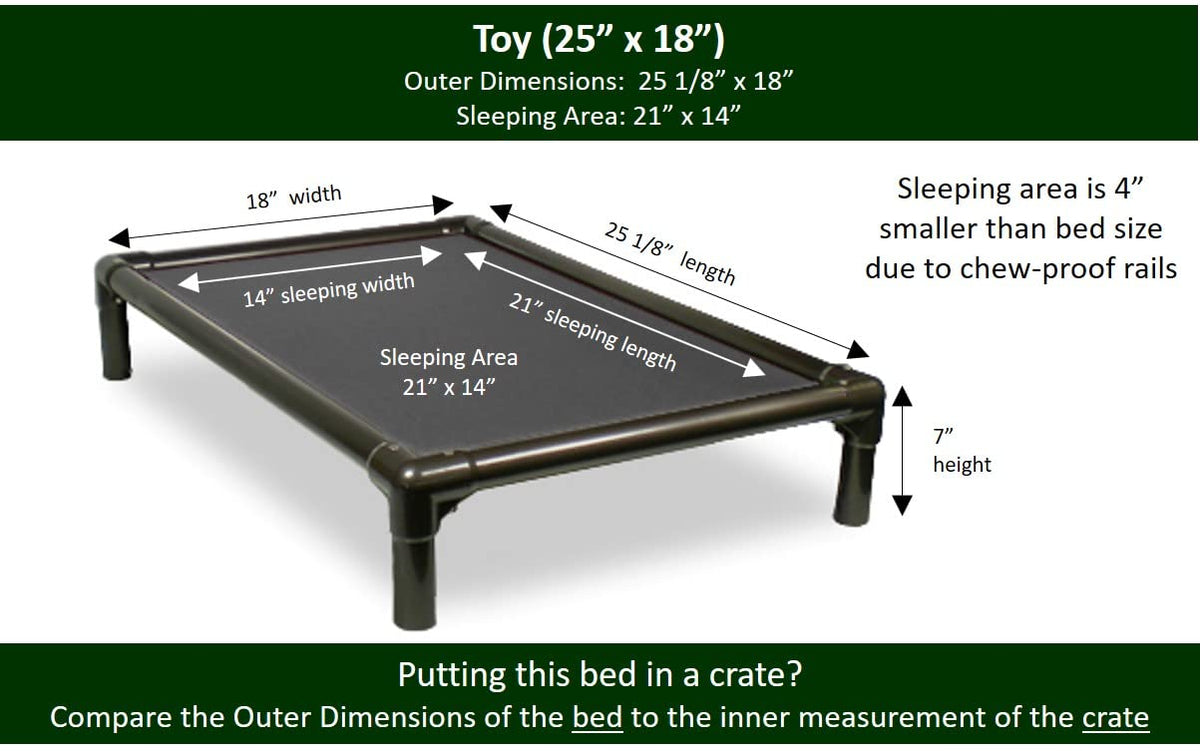 The original chewproof dog bed and still the best. Kuranda patented the Chewproof Dog bed in 1995 and we have improved our beds every year since then. Wide rails prevent chewing by larger breeds. Heavy duty fabric resists digging and supports up to 250