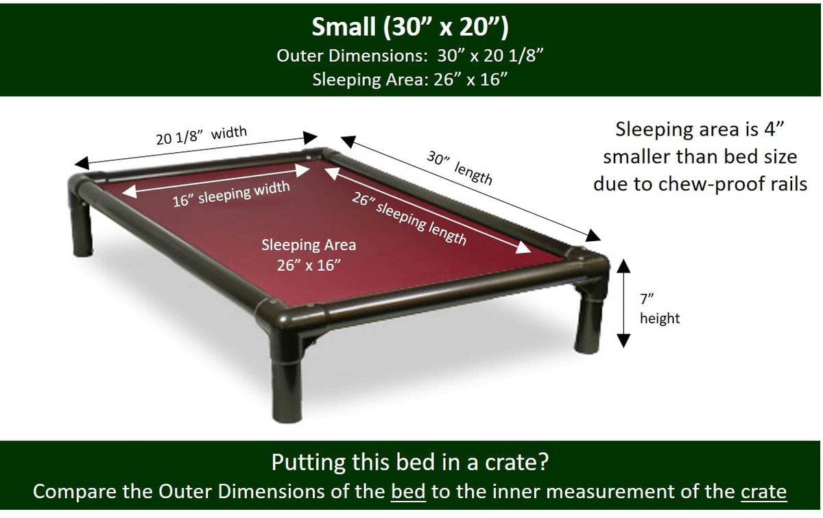 The original chewproof dog bed and still the best. Kuranda patented the Chewproof Dog bed in 1995 and we have improved our beds every year since then. Wide rails prevent chewing by larger breeds. Heavy duty fabric resists digging and supports up to 250