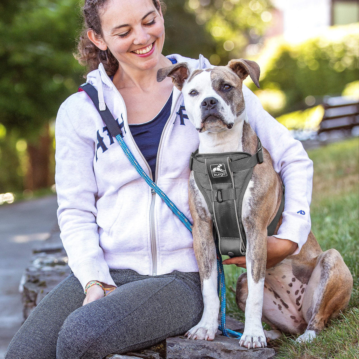 Q: What materials is the Kurgo dog harness made from?A: The Kurgo dog harness is made from durable polyester, ensuring it is both comfortable for your pet and capable of withstanding everyday wear and tear.