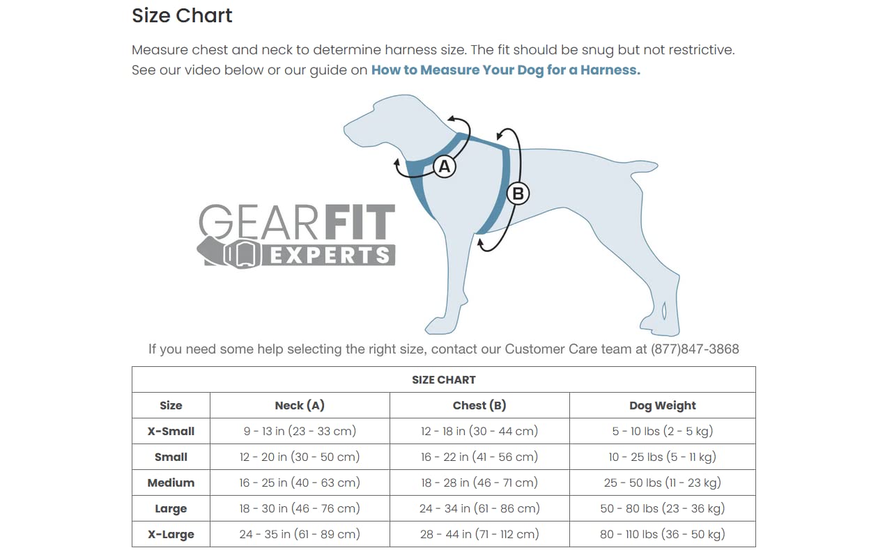 Q: What size Kurgo Tru-Fit Smart Harness should I choose for my dog?A: The Medium size of the Kurgo Tru-Fit Smart Harness is designed for dogs with a neck measurement of 16-25 inches and a chest measurement of 18-28 inches. Be sure to refer to the Kurgo size chart for the most accurate fit.
