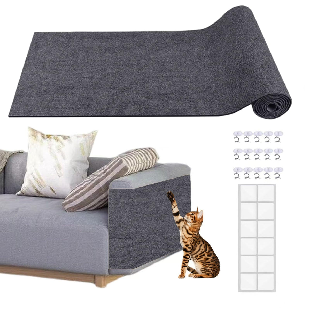 Protect your furniture the smart way with the KVIDA Cat Scratch Furniture Protector. Measuring a generous 98 inches long by 16 inches wide, it provides comprehensive defense against claw damage on couches, sofa arms, and even walls. Crafted with high-quality woven carpet, the textured surface is naturally appealing to cats, satisfying their scratching instinct while preserving your home. Its cuttable design allows for full customization-whether you need a narrow strip or a wide patch, KVIDA adapts to your layout. Installation is fast and frustration-free. Self-adhesive backing ensures a secure hold, and the included clear acrylic pins and stickers keep it firmly in place without harming your furniture or posing a risk to your pets. Ideal for use on fabric surfaces and suitable for all breeds and sizes of indoor cats, the KVIDA scratch protector blends seamlessly into your living space while protecting what matters most.