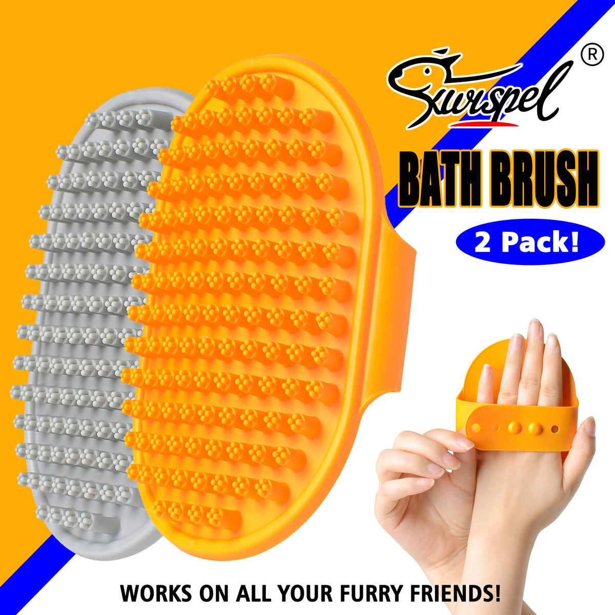 Kwispel Dog Bath Brush Set - 2 Pcs Rubber Grooming And Shedding Brush For Short And Long Haired Dogs, Cats With Adjustable Handle - Perfect For Washing, Shampooing, And Bathing