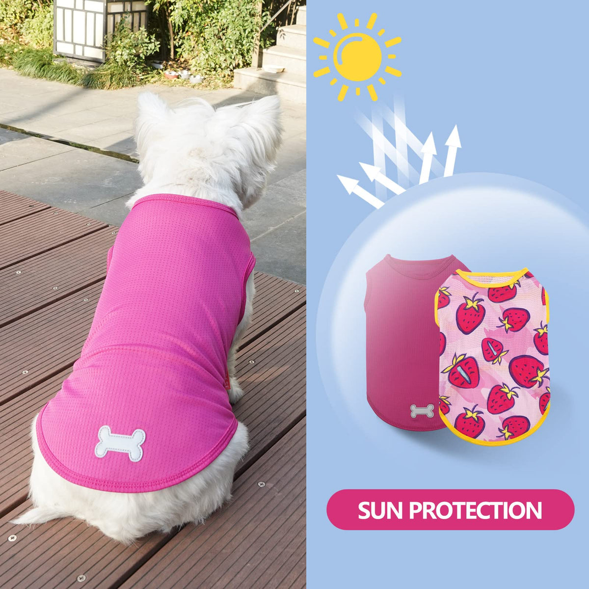 Kyeese 2 Pack Dog Shirts For Small Dogs Breathable Dog T-Shirts Soft Tank Top Sleeveless Vest Puppy Dog Tee Shirt Dog Apparel Great For Summer Strawberry Pattern, X-Large, Strawberry+Rose