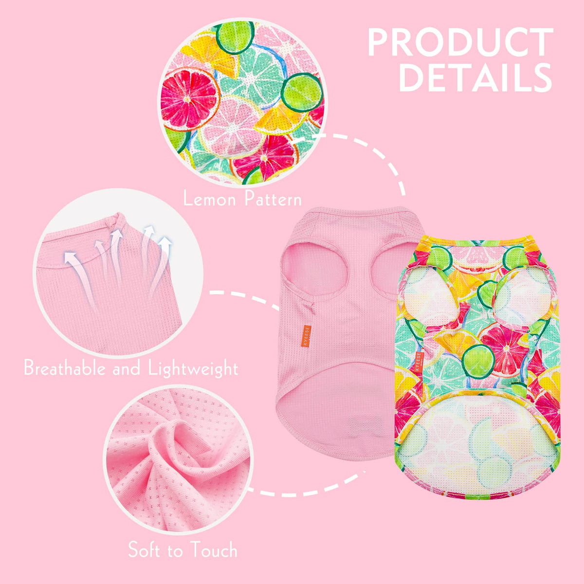 Kyeese 2 Pack Dog Shirts Quick Dry Lightweight Dog T-Shirts With Reflective Label Tank Top Sleeveless Vest Cat Shirts For Summer Lemon Pattern