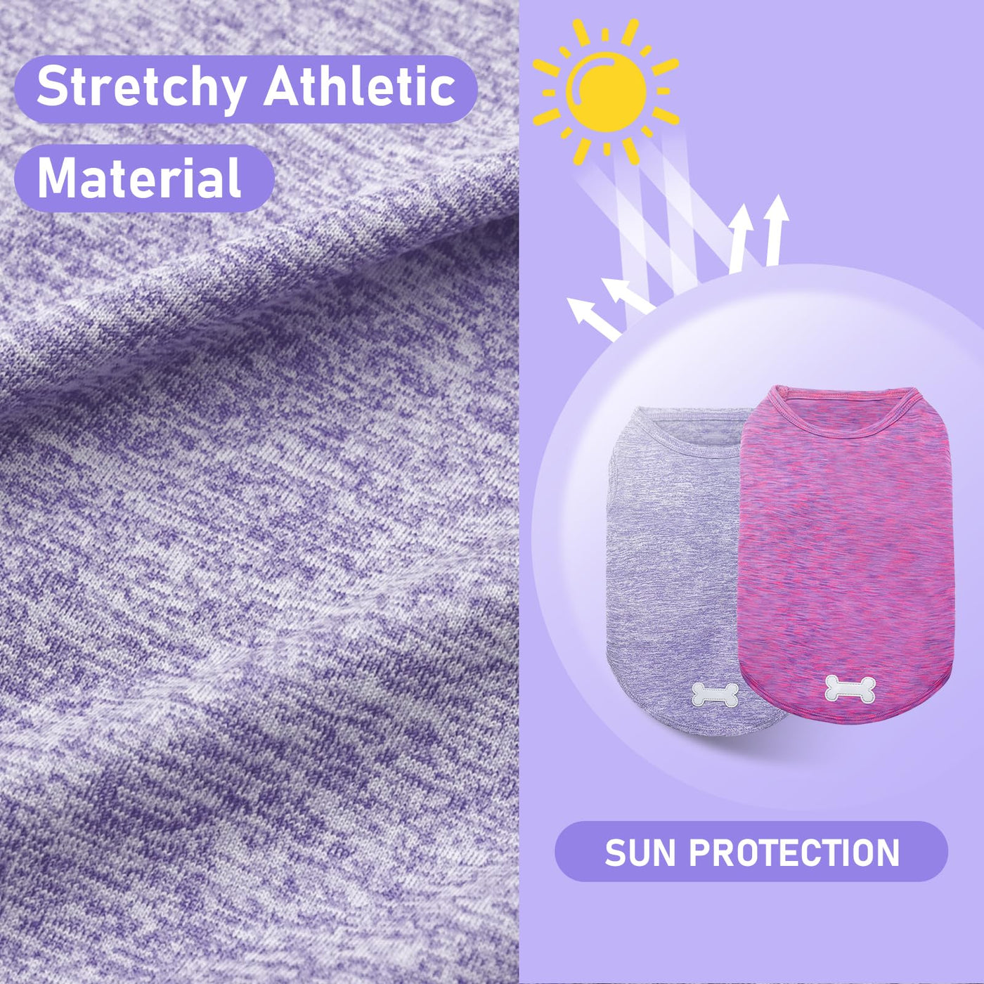Kyeese 2 Pack Dog Shirts Quick Dry Soft Stretchy Dog T-Shirts With Reflective Label Tank Top Sun Protection Sleeveless Vest Dog