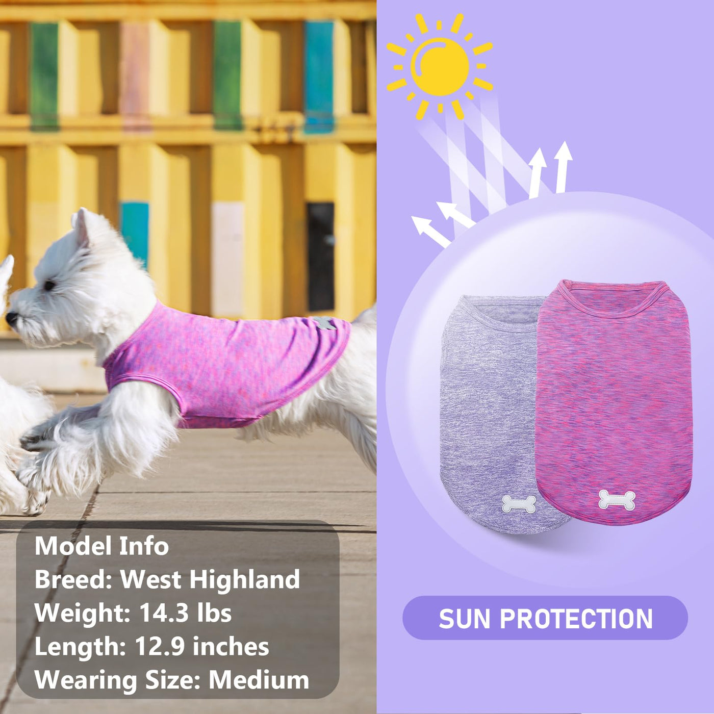 Kyeese 2 Pack Dog Shirts Quick Dry Soft Stretchy Sun Protection Dog T-Shirts With Reflective Label Tank Top Sleeveless Vest Pet