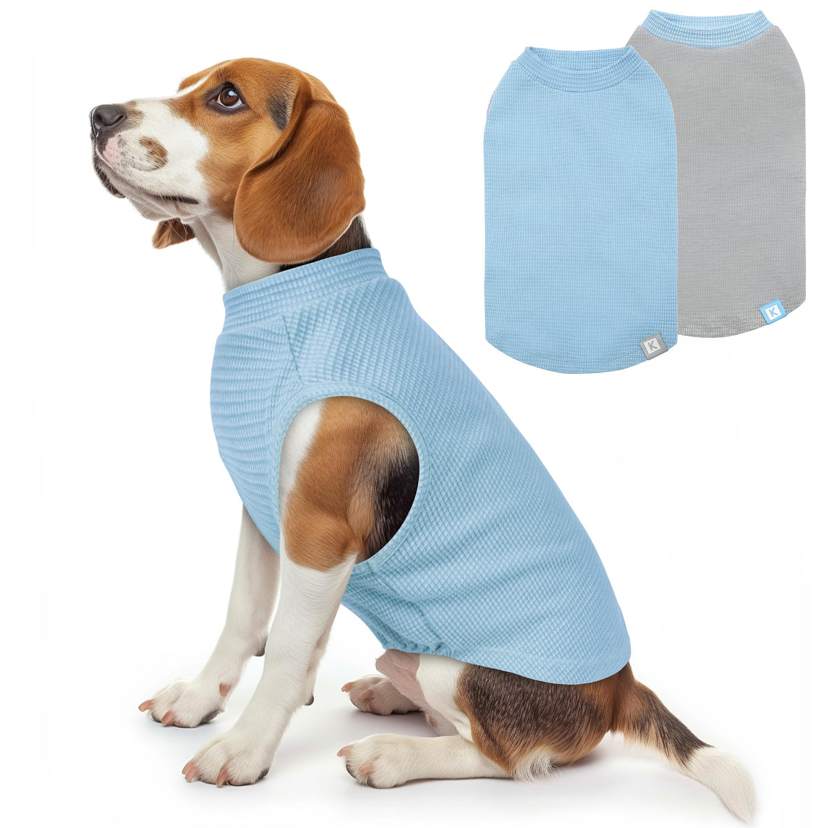 Kyeese 2Pack Dog T Shirts Waffle Stretchy T-Shirts Lightweight Tank Top Sleeveless Vest Breathable Pet Apparel, Xx-Large, Blue+G