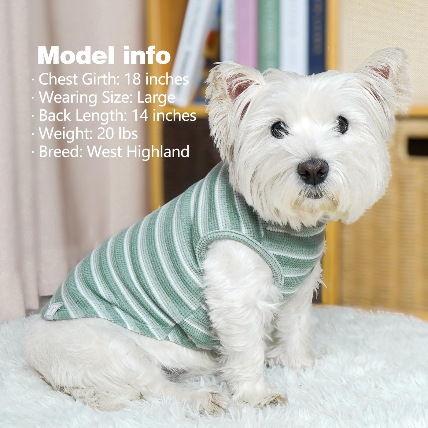 Kyeese 2Pack Waffle Dog Shirts For Small Dogs Stretchy Dog T-Shirts Lightweight Pet Tank Top Sleeveless Striped Dogs Shrit Vest