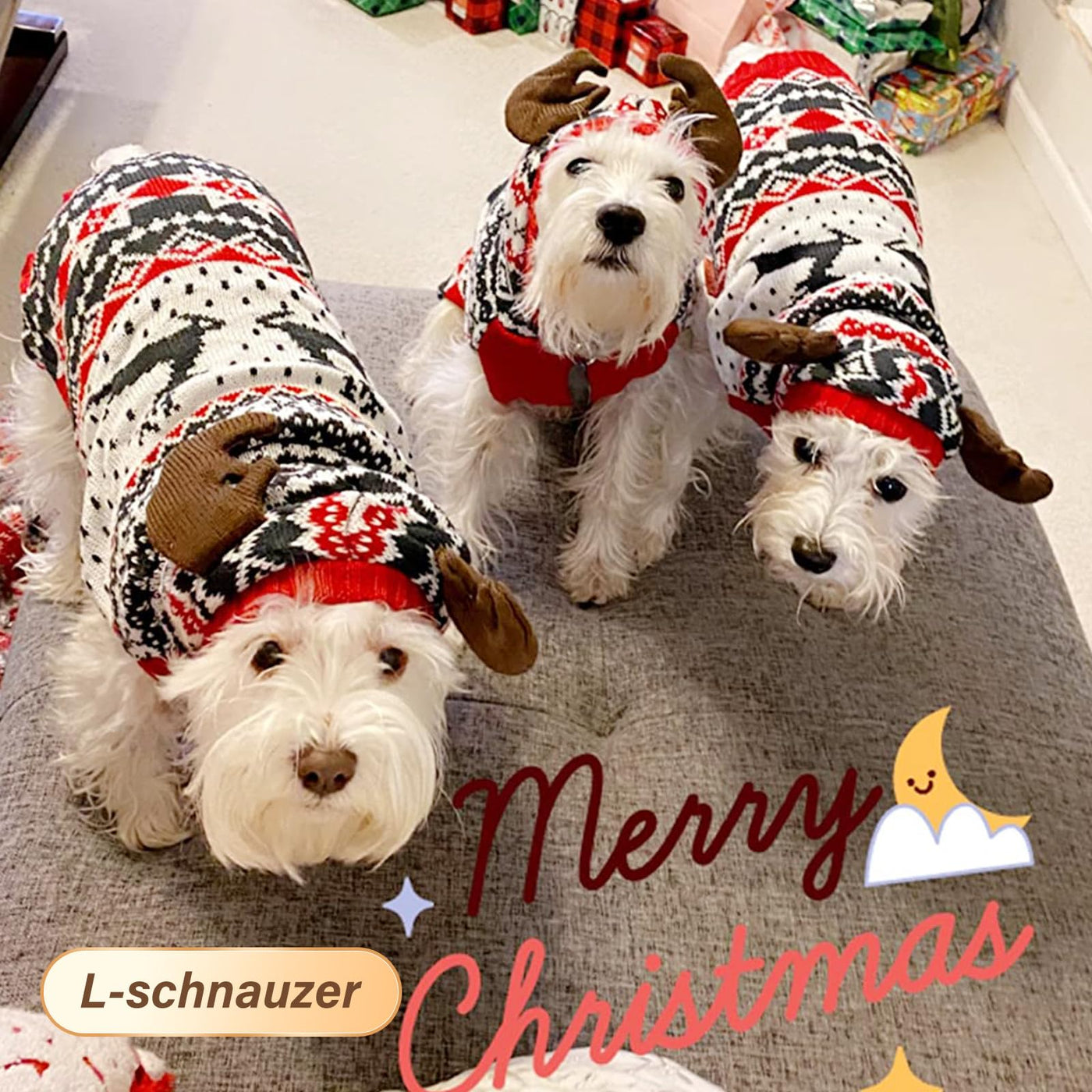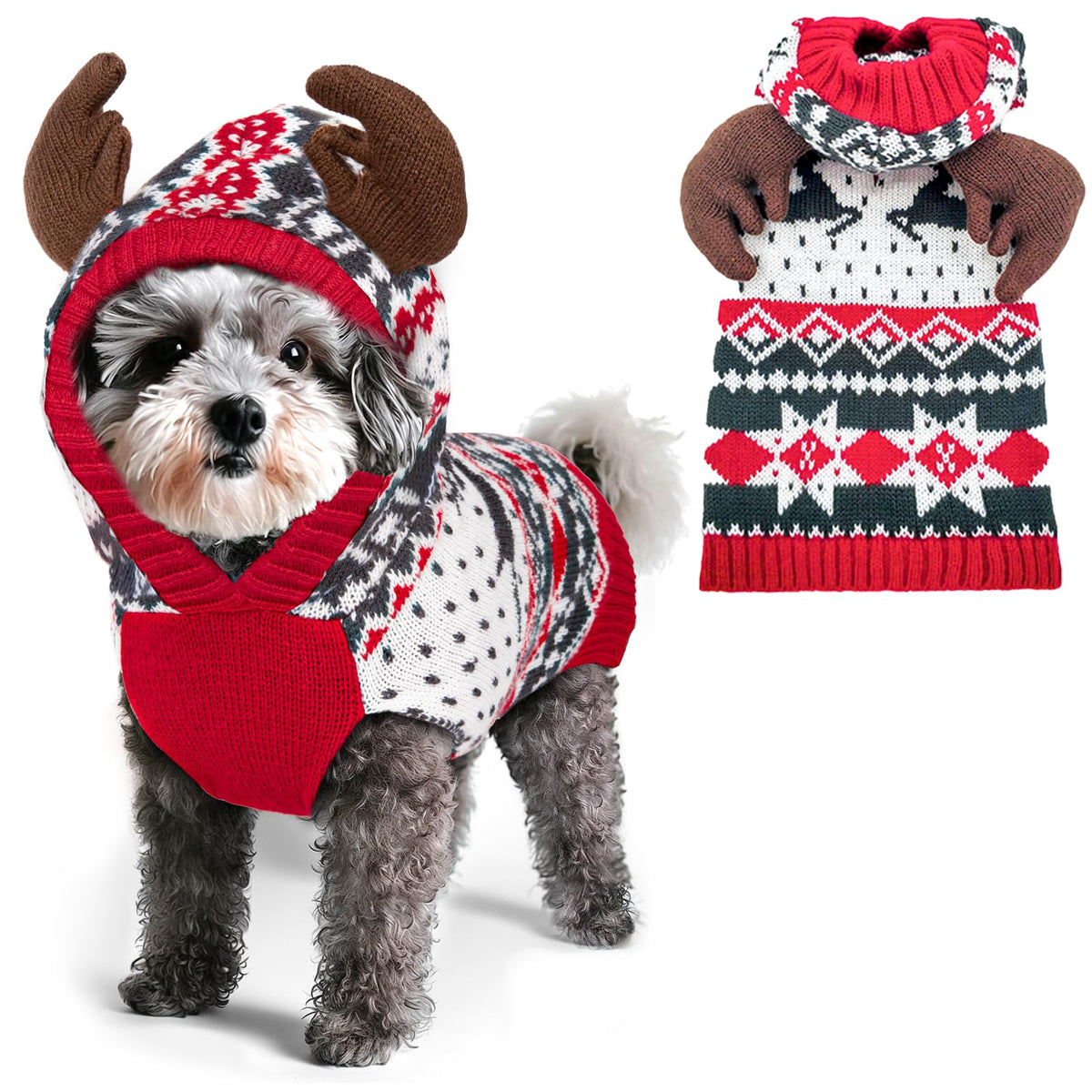 Kyeese Christmas Dog Sweater Hoodie Reindeer Red Dogs Knitwear Pullover Pet Sweater With Leash Hole Ugly Christmas Dog Sweater For Small Dogs