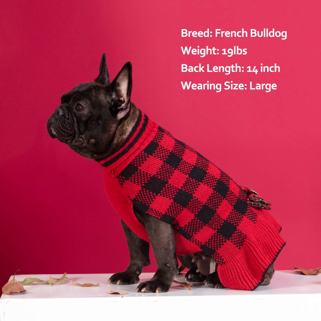 Kyeese Christmas Dog Sweaters Dress For Small Medium Dogs With Leash Hole Checkered Dog Sweaters Turtleneck With Bowtie Dog Apparel For Winter