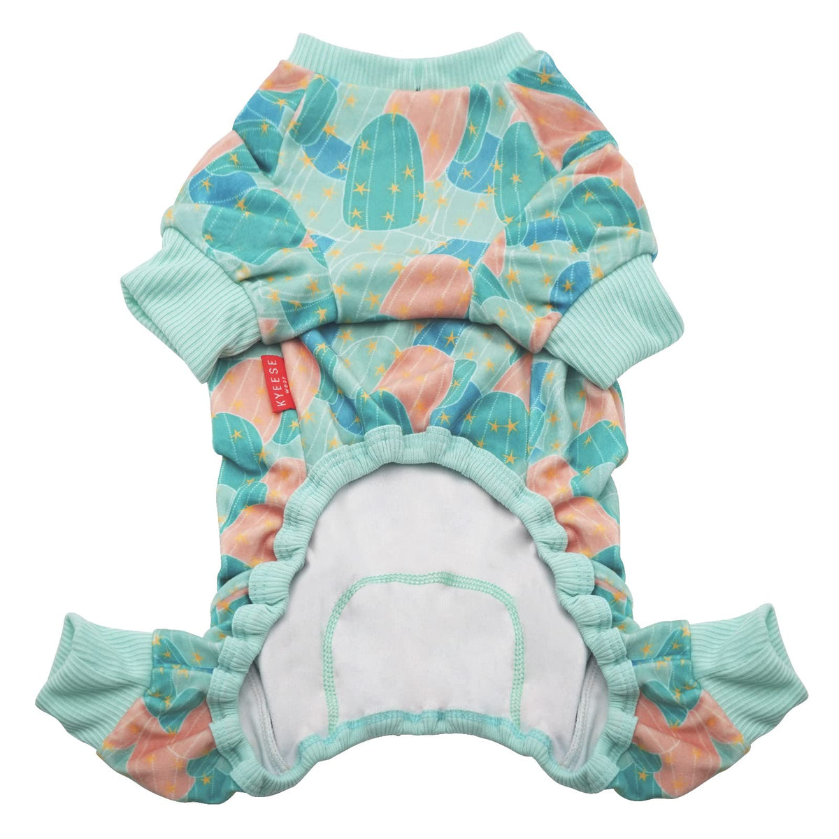 Dog pajamas cactus printing is made of soft stretchable velvet very comfy for your dog 's dailywear. Pullover design dog pjs easy to put on and off