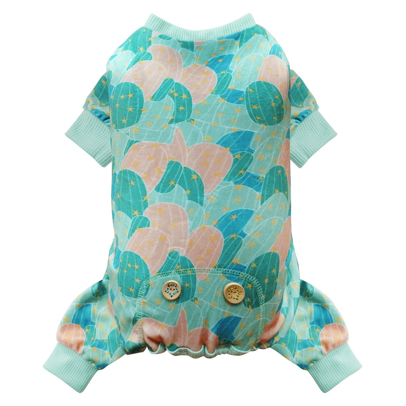 Dog pajamas cactus printing is made of soft stretchable velvet very comfy for your dog 's dailywear. Pullover design dog pjs easy to put on and off