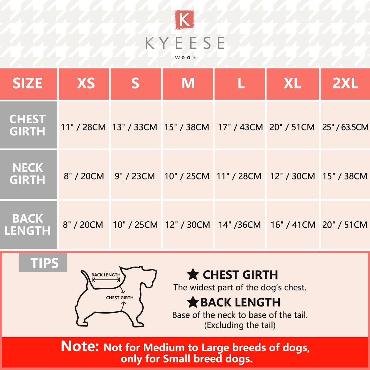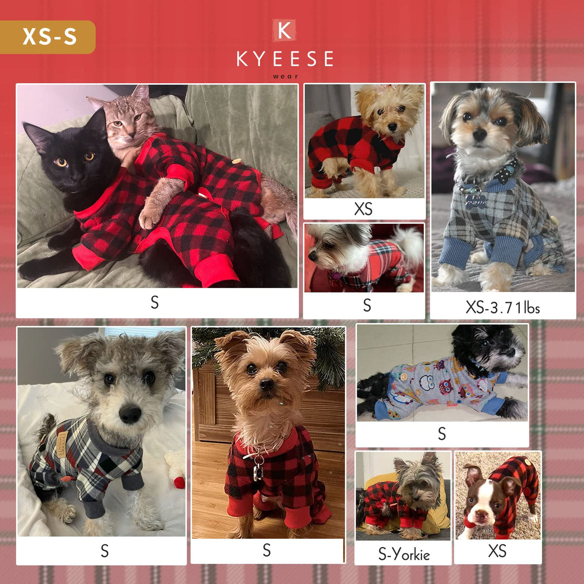 Q: What size should I choose for my dog?A: This KYEESE Dog Pajamas is designed with little stretch, so it is recommended to size up for a more comfortable fit. Please refer to the sizing chart to ensure the best fit for your small dog.