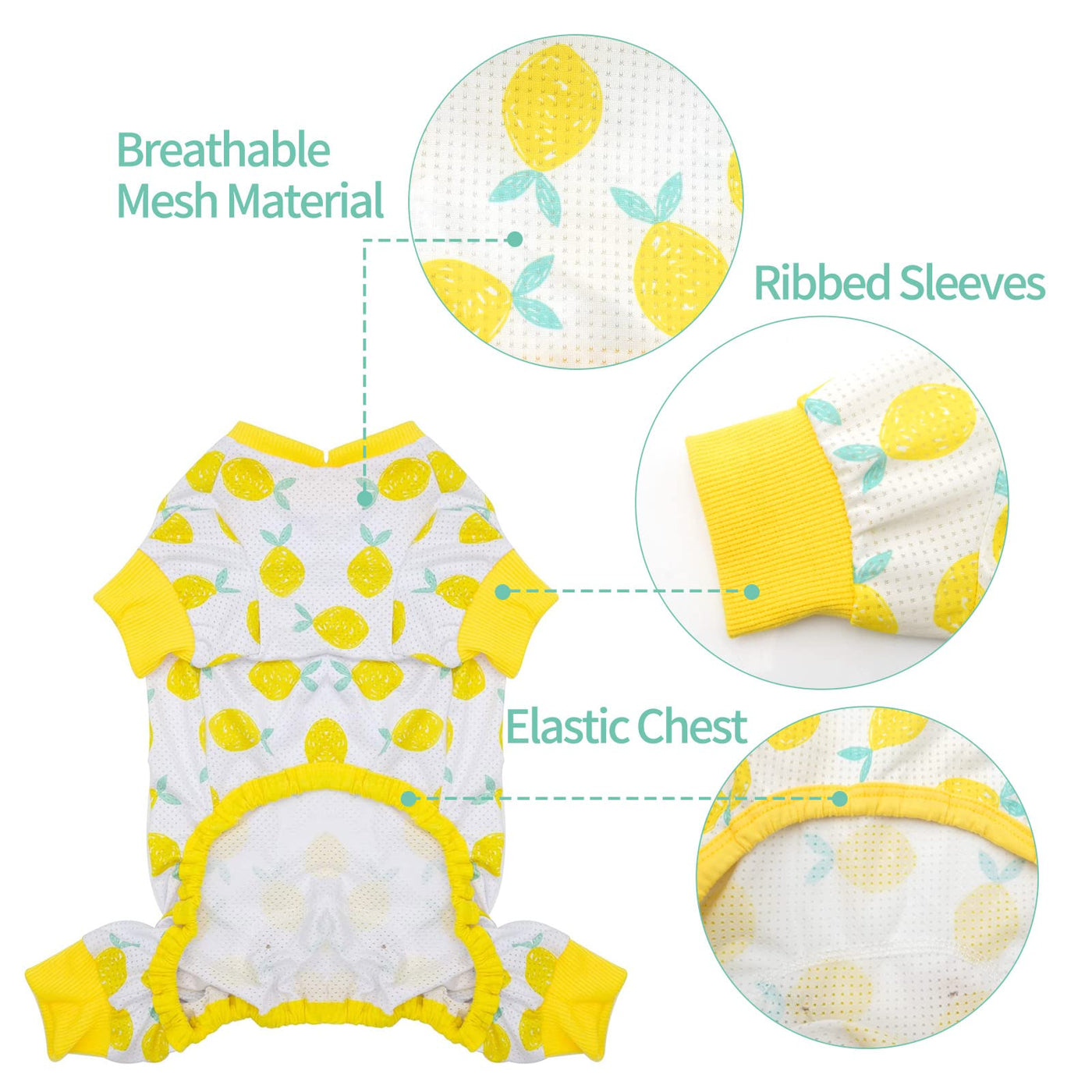 Kyeese Dog Pajamas Stretchable Lemon Dog Pjs Lightweight 4 Legs Dog Onesie Soft Mesh Material Great For Summer
