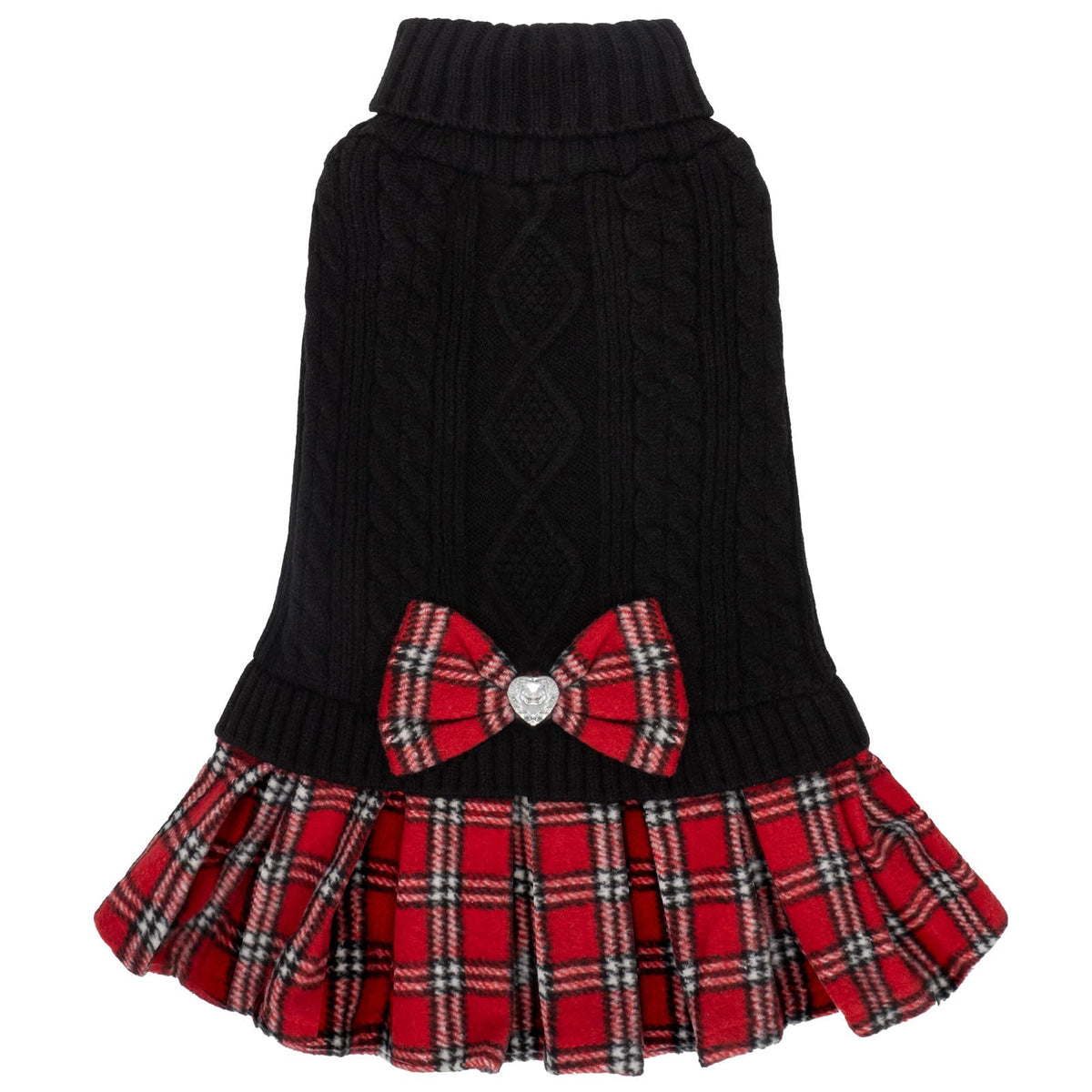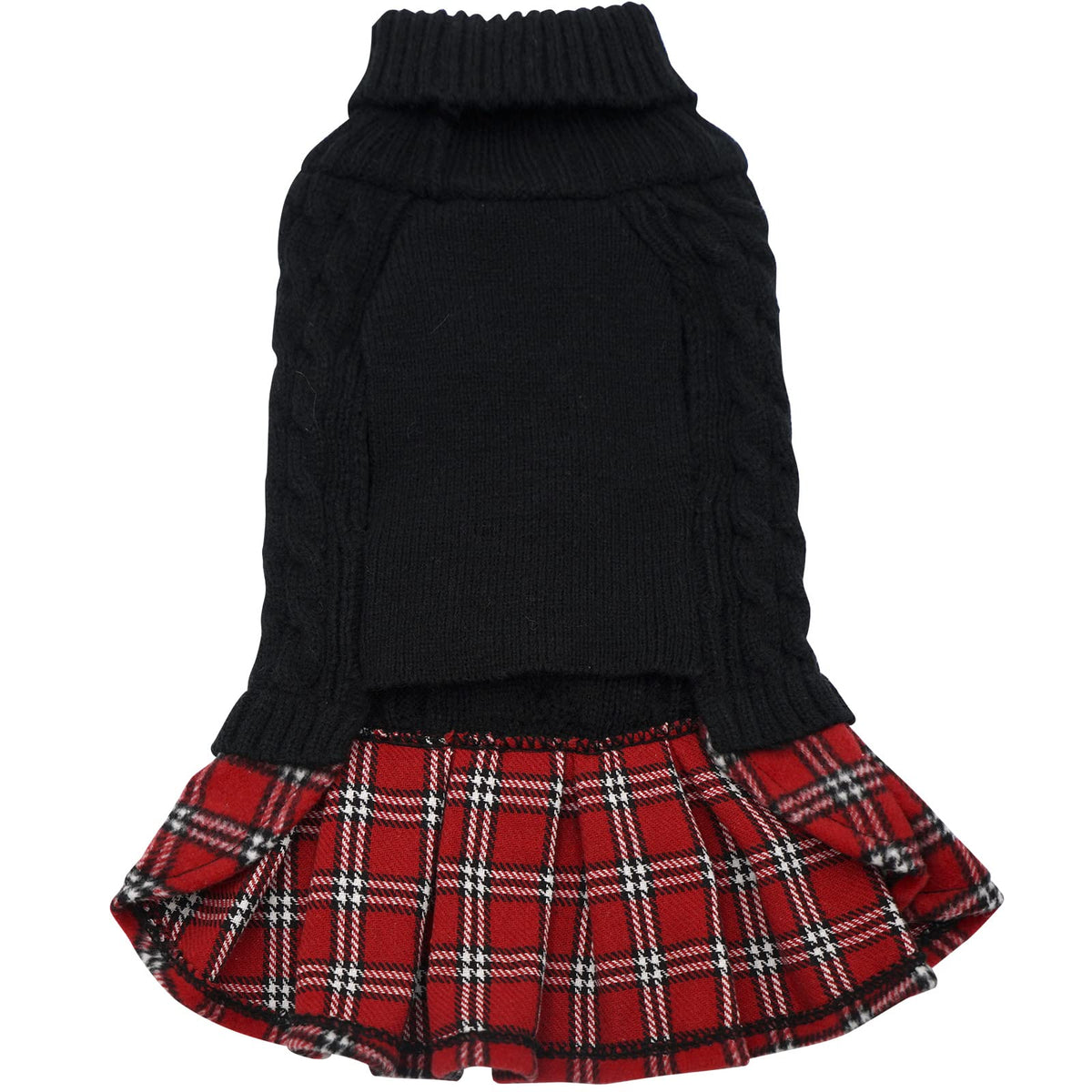 Kyeese Dog Sweater Dress With Leash Hole For Small Dogs With Bowtie Buffalo Check Red Turtleneck Dog Pullover Knitwear Puppy Cat Sweater Black