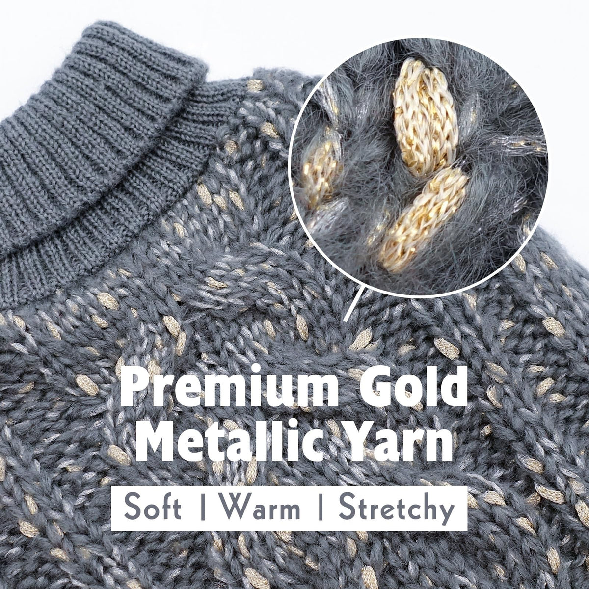 Kyeese Dog Sweater For Small Medium Dogs Knit Pullover Doggie Sweater Warm Pet Sweater For Fall Winter With Golden Yarn Decors Grey