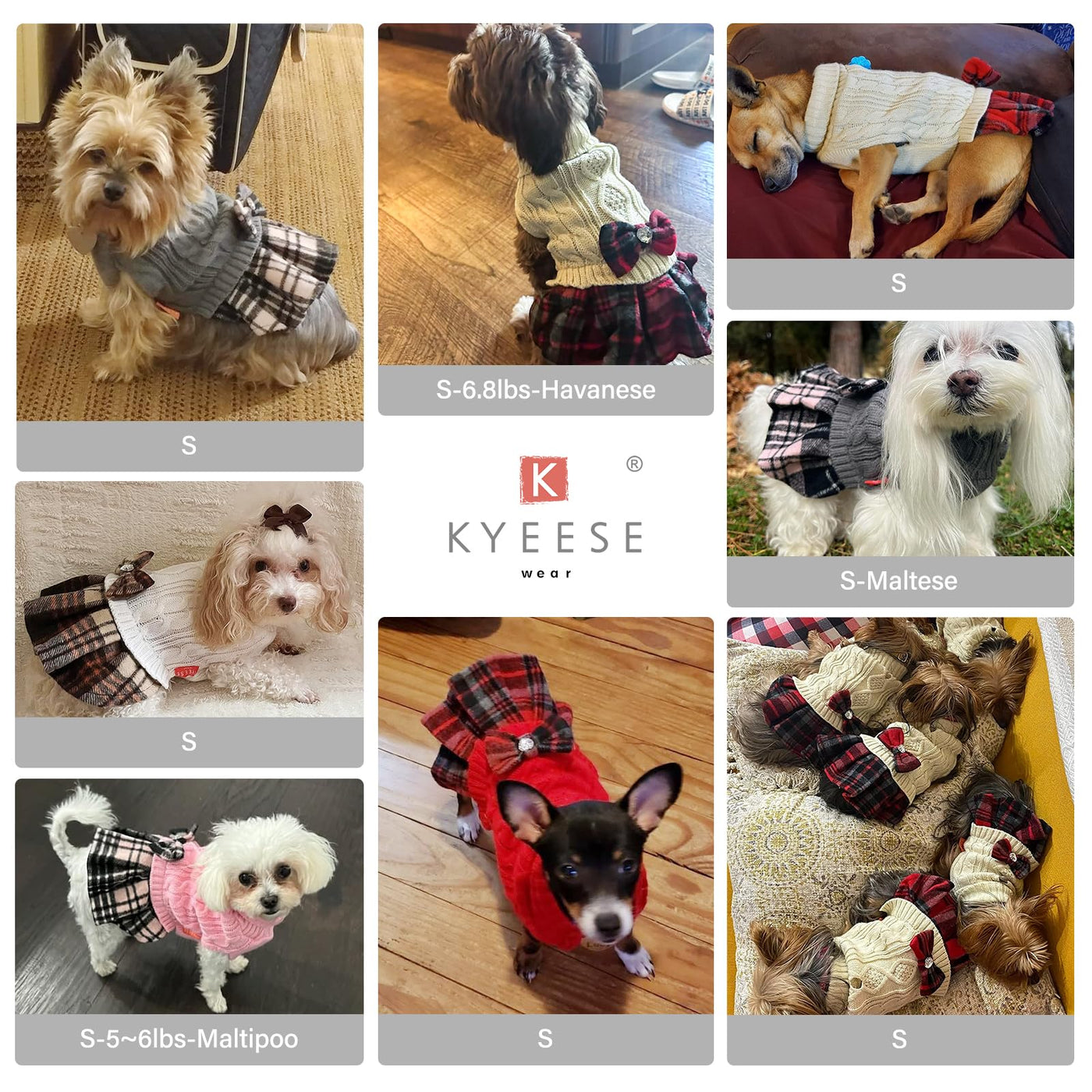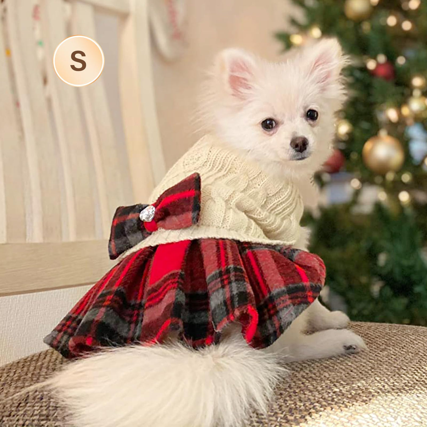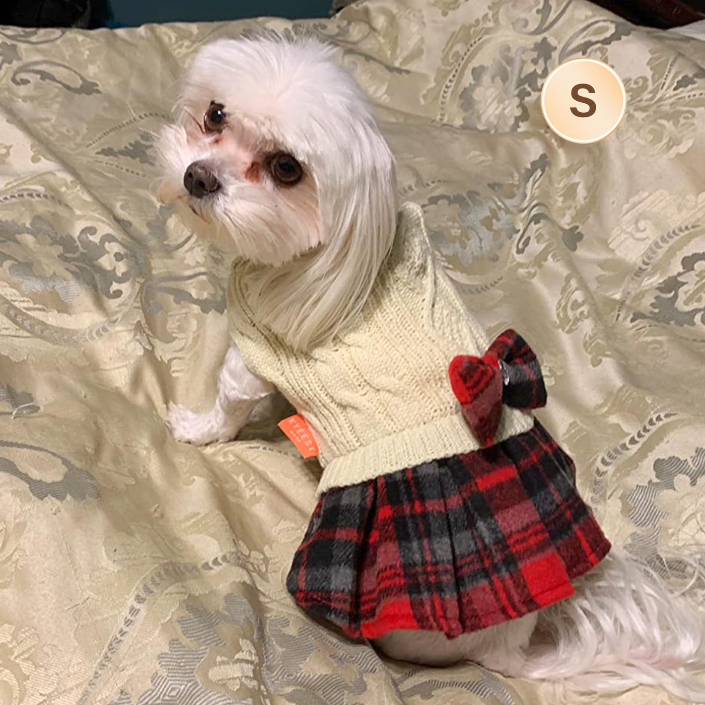 Kyeese Dog Sweater With Bowtie Buffalo Check For Small Dogs Male Turtleneck Pullover Dress Knitwear Clothes Coats Puppy, White,