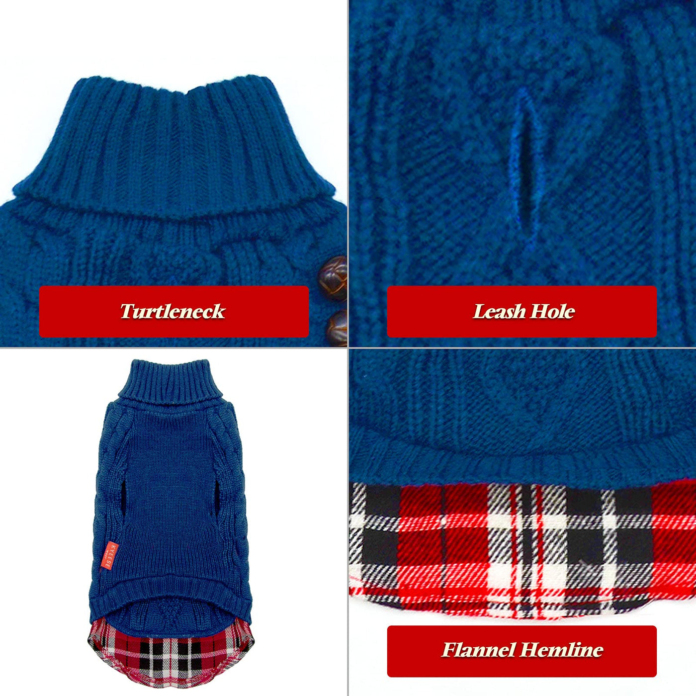 Kyeese Dog Sweaters For Small Dogs Navy Blue With Leash Hole Turtleneck Dog Pullover Sweater With Gingham Patchwork Knit Warm Puppy Sweater