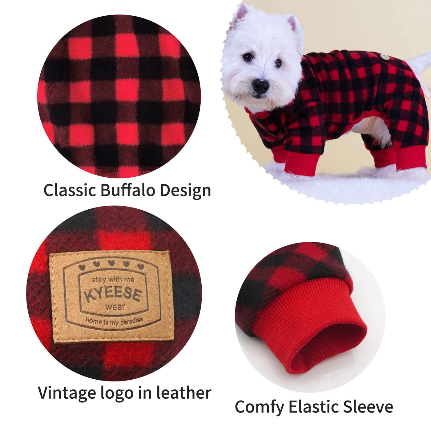 Kyeese Dogs Pajamas Plaid For Small Dog Red Buffalo Check Dog Pajama Onesie For Small Dogs