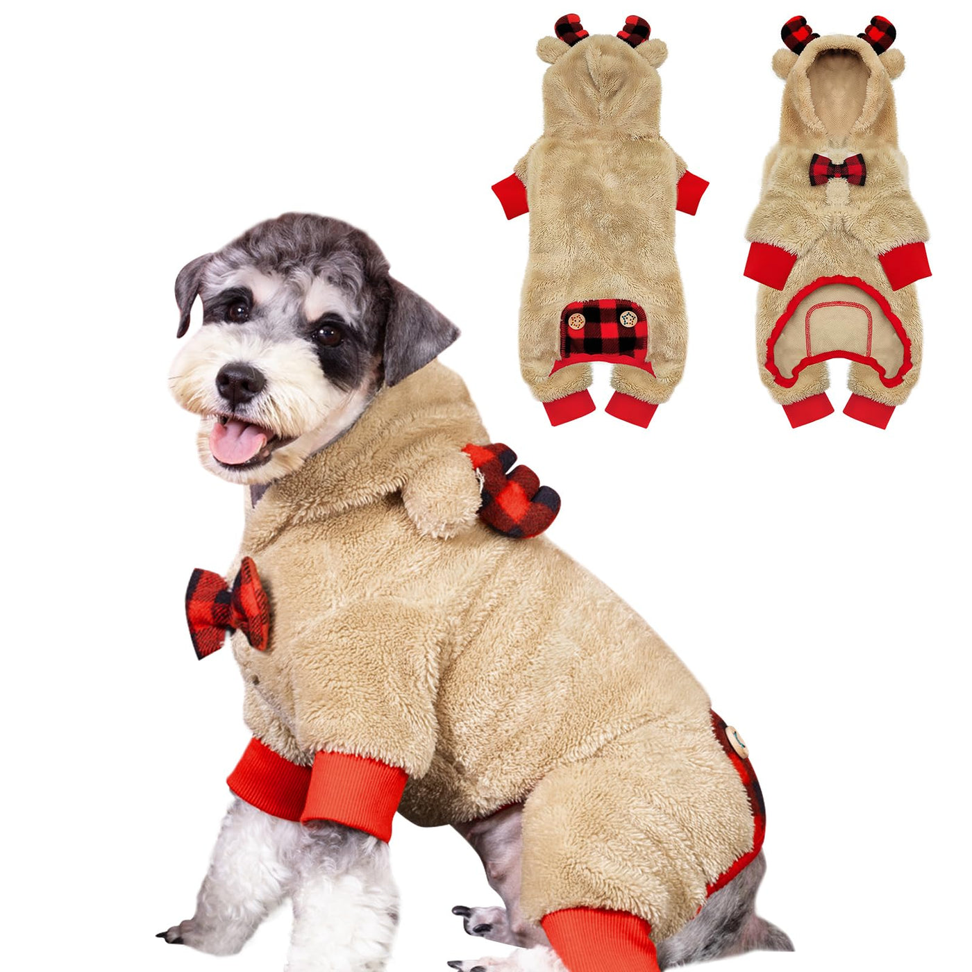 Kyeese Holiday Dog Pajama Christmas Reindeer With Bowtie Red Buffalo Check Small Dog Pajamas Plaid Pet Pajamas,X-Large