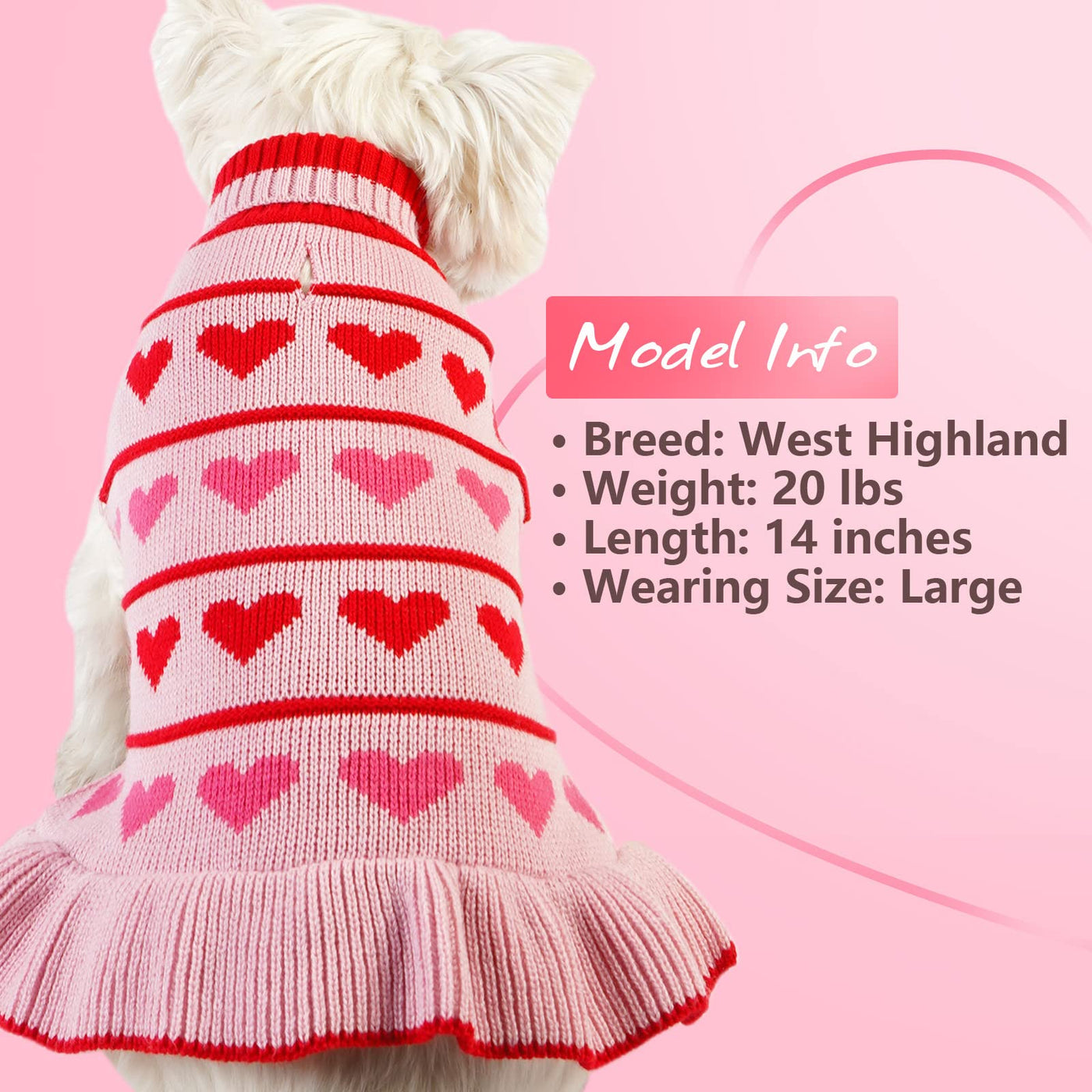 ?Leading the Fashion?KYEESE dog sweater dress in heart pattern ruffle bottom more cute and elegant. Always ready for any occasions daily activities photoshooting.