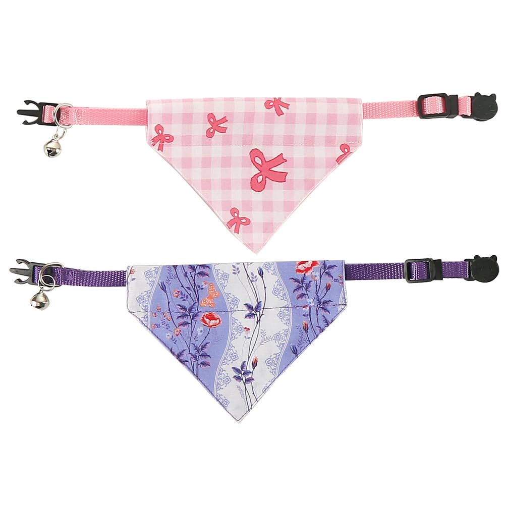 Kzhareen Cat Collars Breakaway With Bandana Bell Plaid Flower Pet Kitten Adjustable For Small Dog Puppies Girl Boy