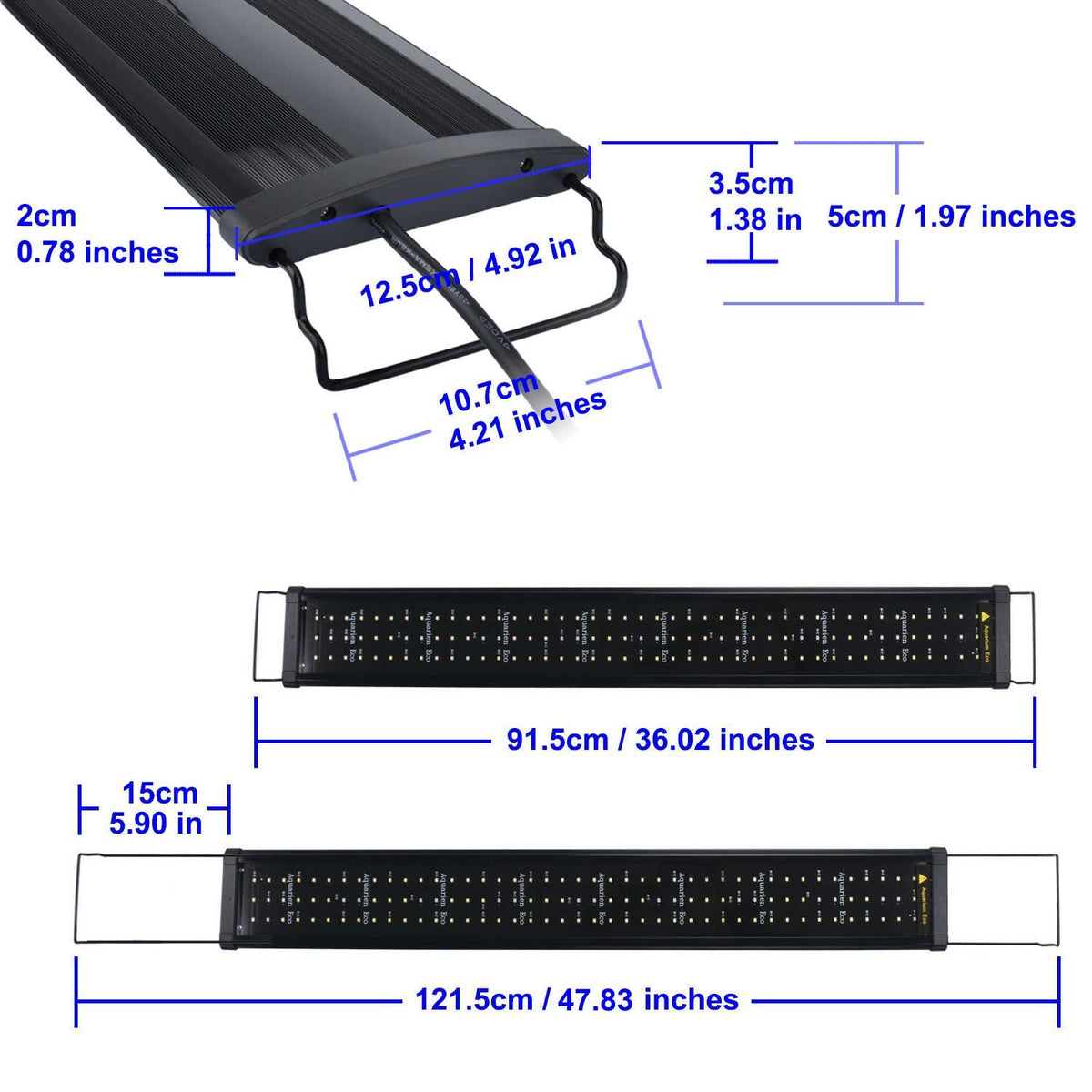 Kzkr Aquarium Hood Lighting Fish Tank Light 36 Inch - 46 Inch For Freshwater And Saltwater Blue And White Light 90Cm - 115Cm
