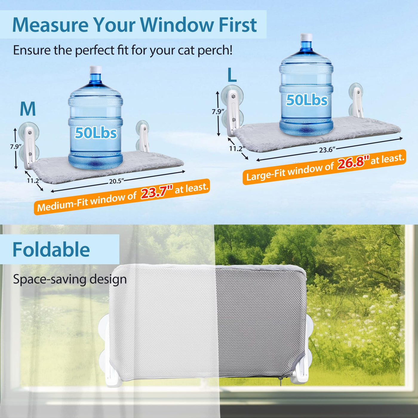 L&W Bros. 3Pc Foldable Cat Window Perch Cat Hammock With 4 Suction Cups Easy To Assemble 23.6''X 11.2'' Cat Window Bed For Large