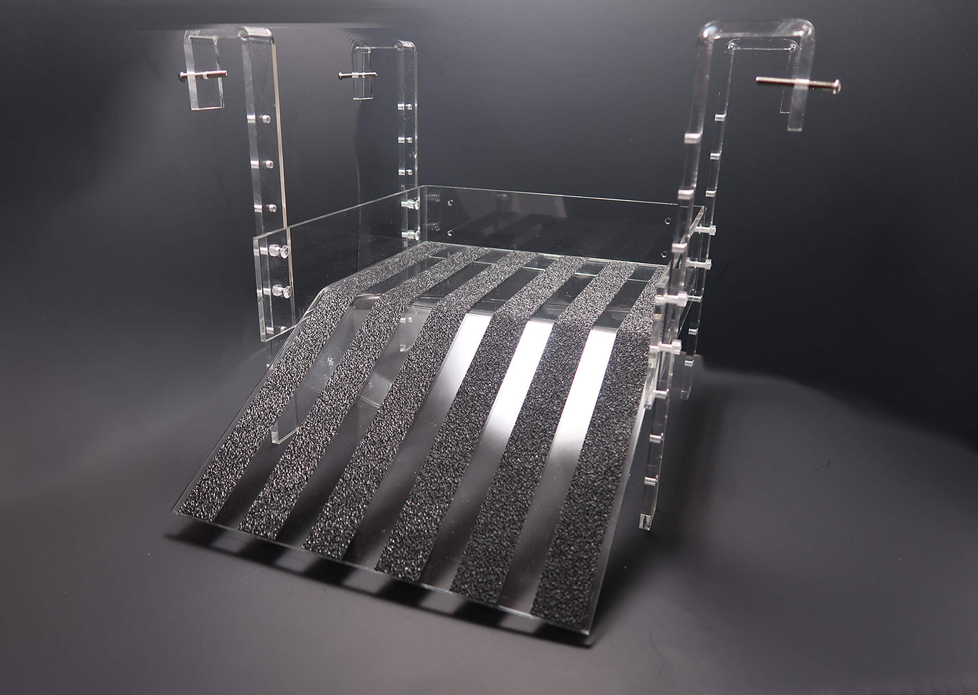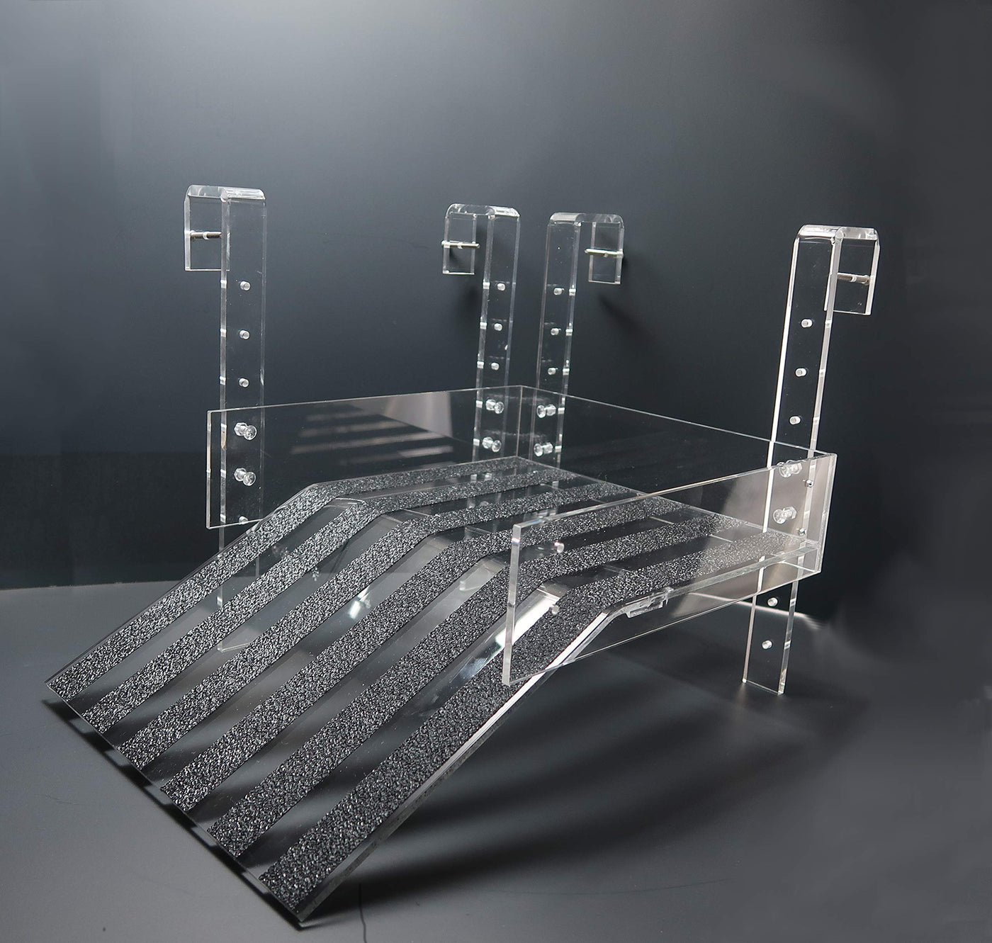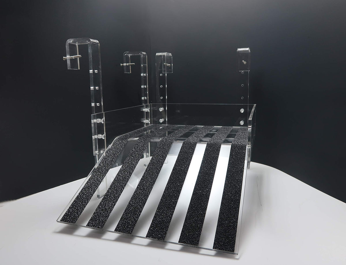 Q: How do I clean and maintain the acrylic ramp?A: The clear acrylic material of the ramp is low maintenance and can be easily cleaned with warm soapy water or an aquarium-safe cleaner, ensuring a hygienic environment for your pets.