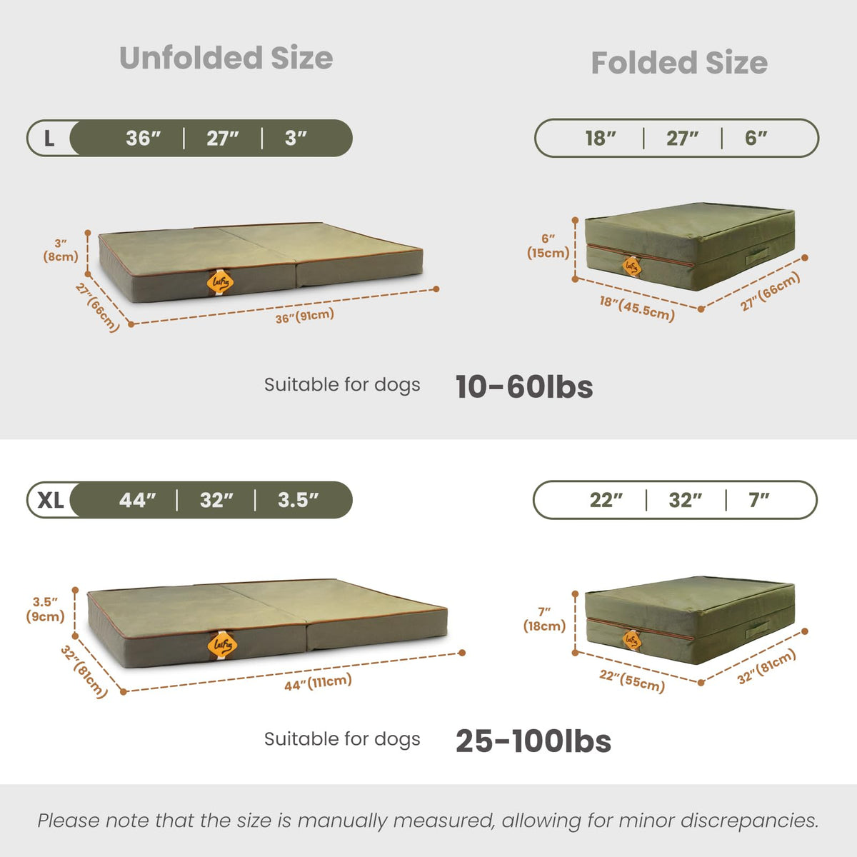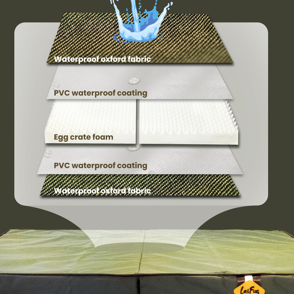 Laifug Foldable Waterproof Dog Bed For Large Dogs - Outdoor Orthopedic Dog Bed With Washable Removable Cover, Pet Mattress With