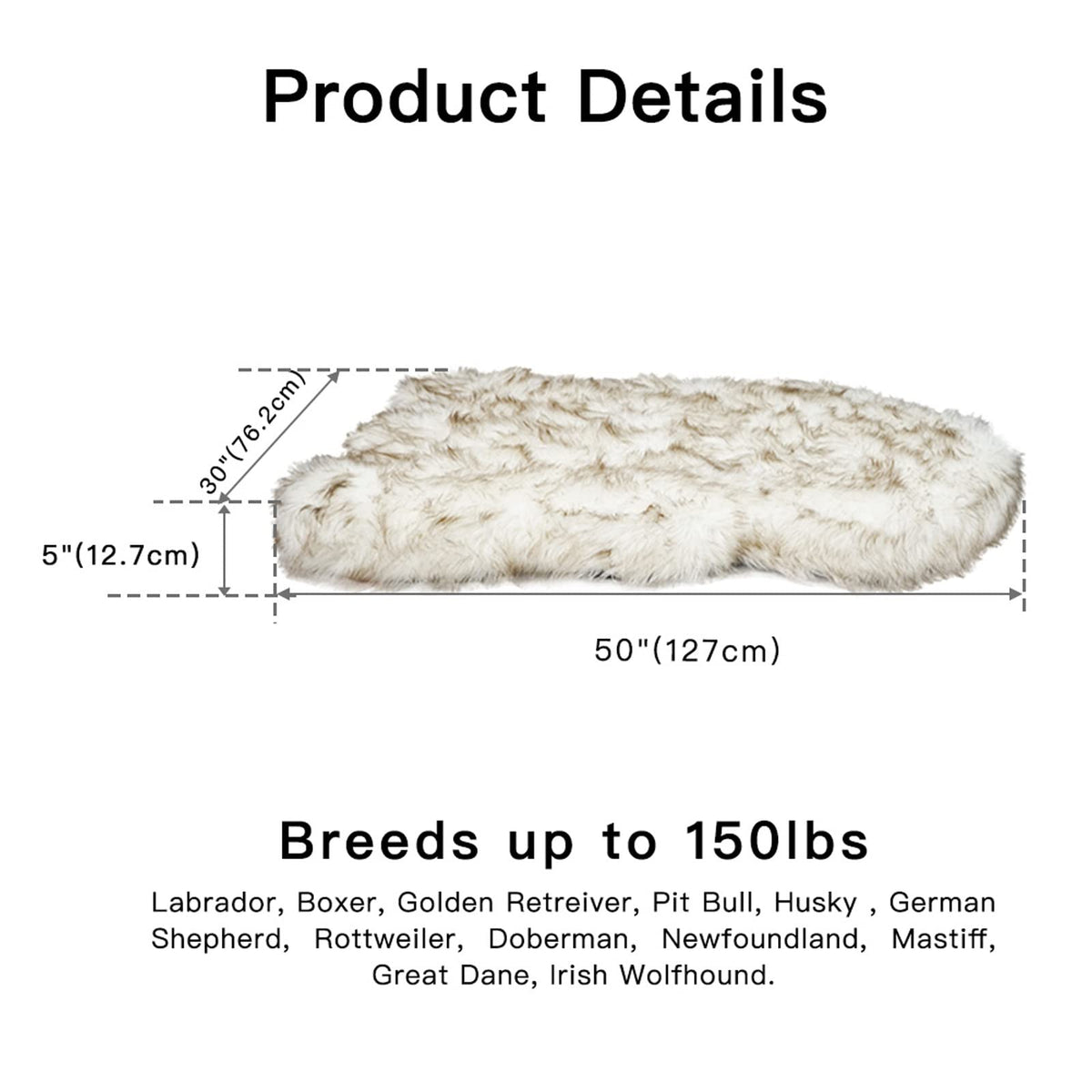 Laifug Luxury Faux Fur Dog Bed - 5-Inch Thick Grade Ultra Soft Memory Foam With Removable Faux Fur Cover, Waterproof Liner (Gray