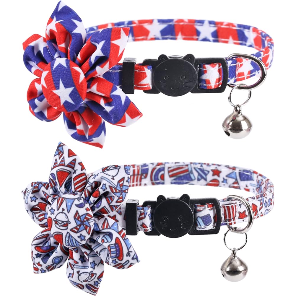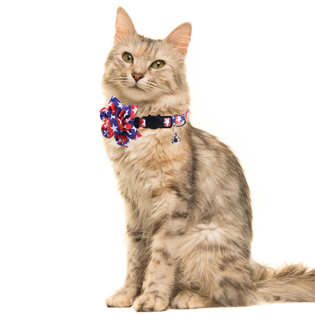 This Collar Is Made Of Export Durable Fabric,Smooth Surface,Very Comfortable And Soft. It Is Very Novel,Unique And Special.The Pet Bowknot Collar Makes Your Cat More Pretty,Lovely And Fashionable.The Usa American Flag And Star Pattern Bring Patriotic Atmosphere In Party.Applicable Occasion: Memorial Day, 4Th Of July Independence Day And Any Other Patriotic Day Of The Year Etc. Material:Breakaway Buckle, Nylon,Ringing Bell Packet Includes:2 Pcs Collars,2 Different Colors