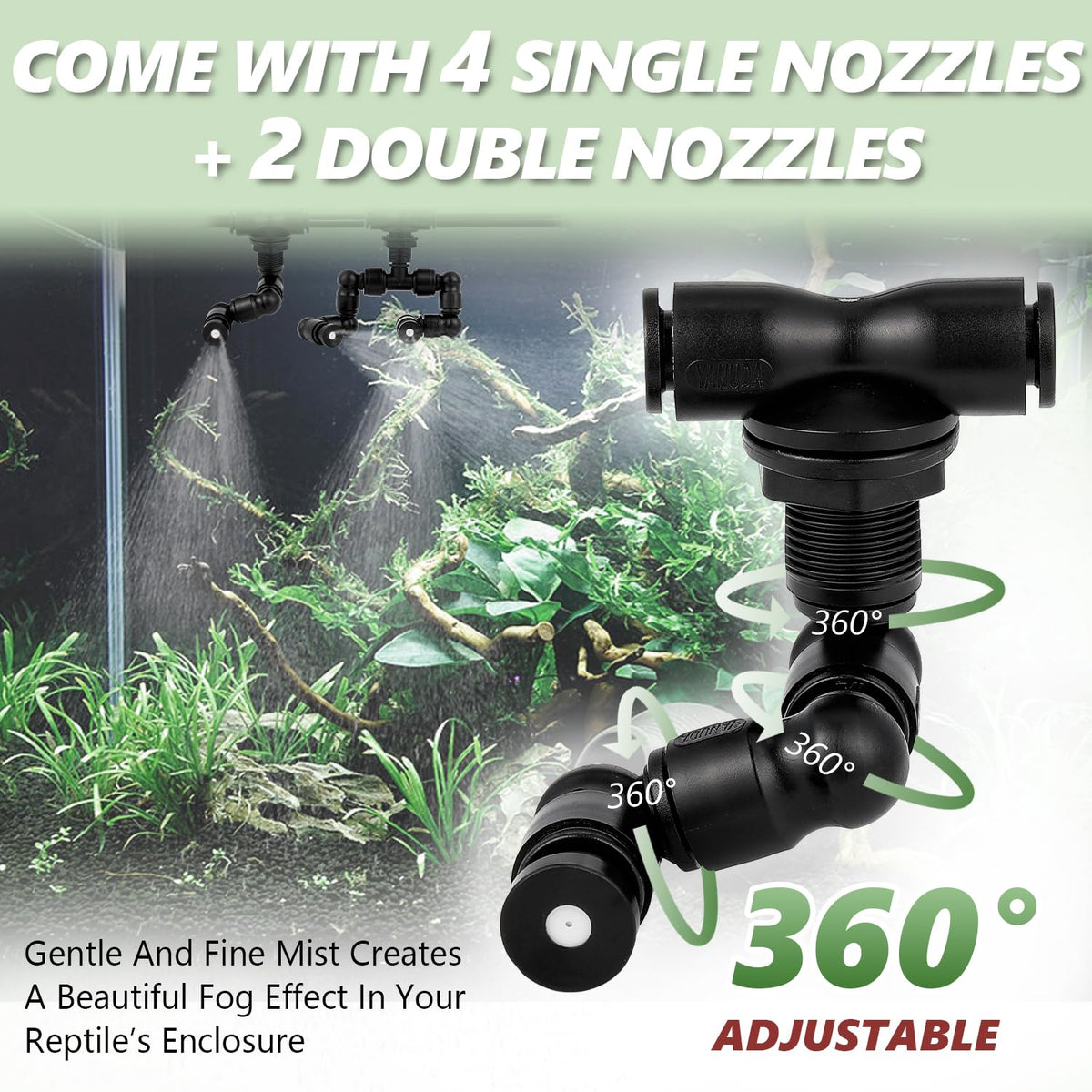 LANUEVA Reptile Humidifier, Quieter Mister Fogger for Terrarium with 4 Single Misting Nozzle + 2 Double Misting Nozzle, Reptile