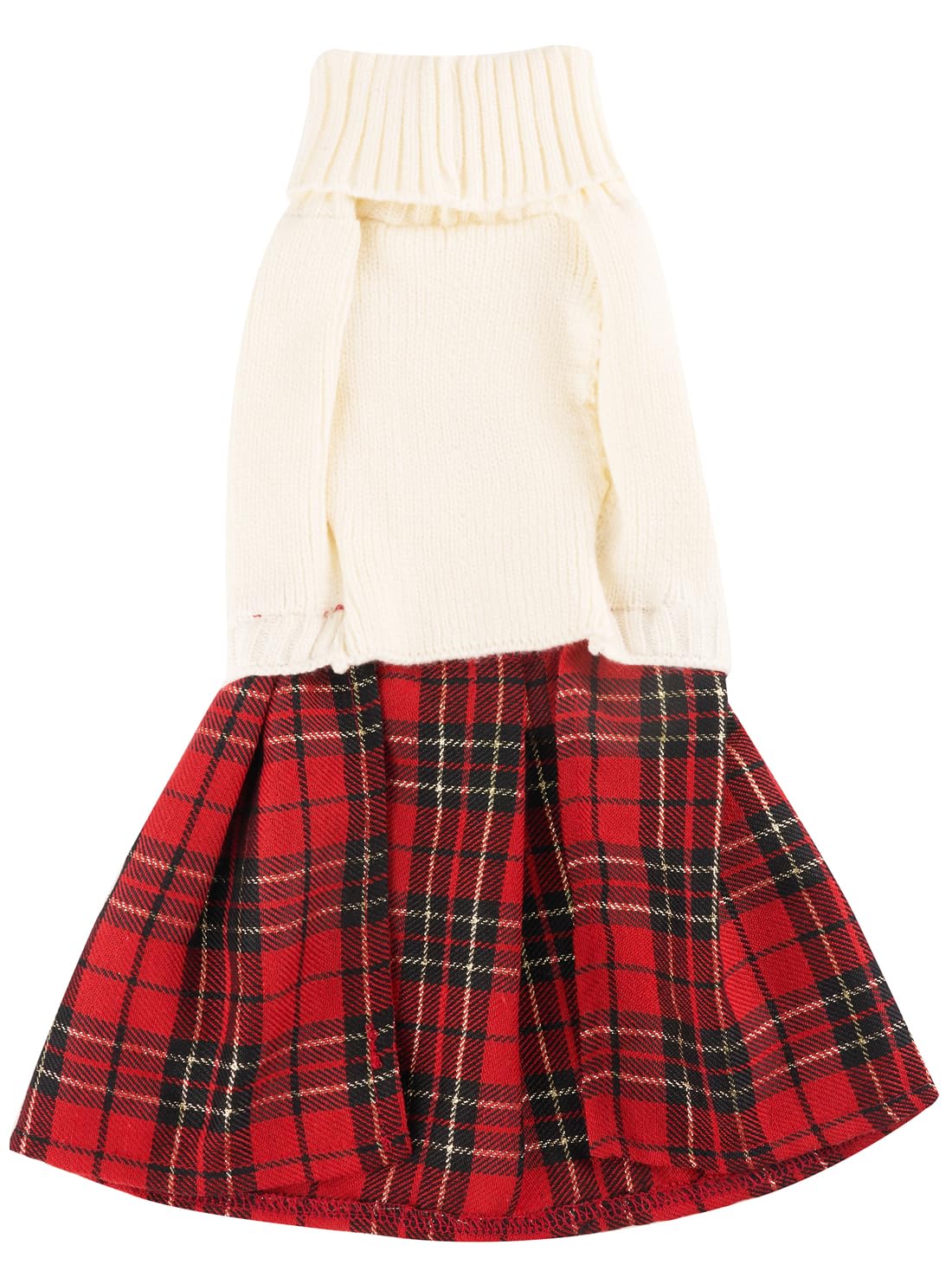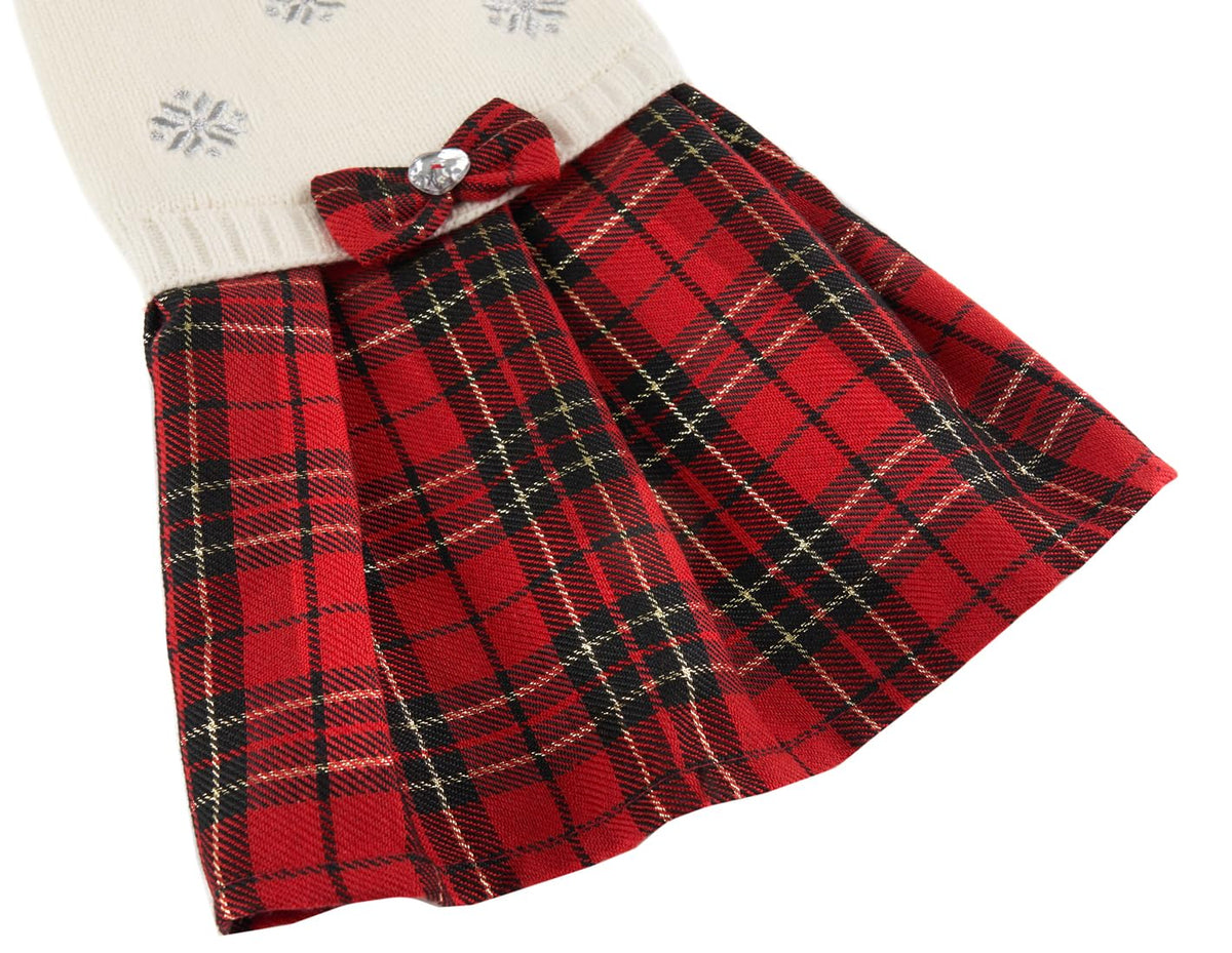 Lanyarco White Embroidery Snowflake Ugly Vintage Knit Reindeer Holiday Festive Christmas Dog Sweater Dress For Small Dogs, Small