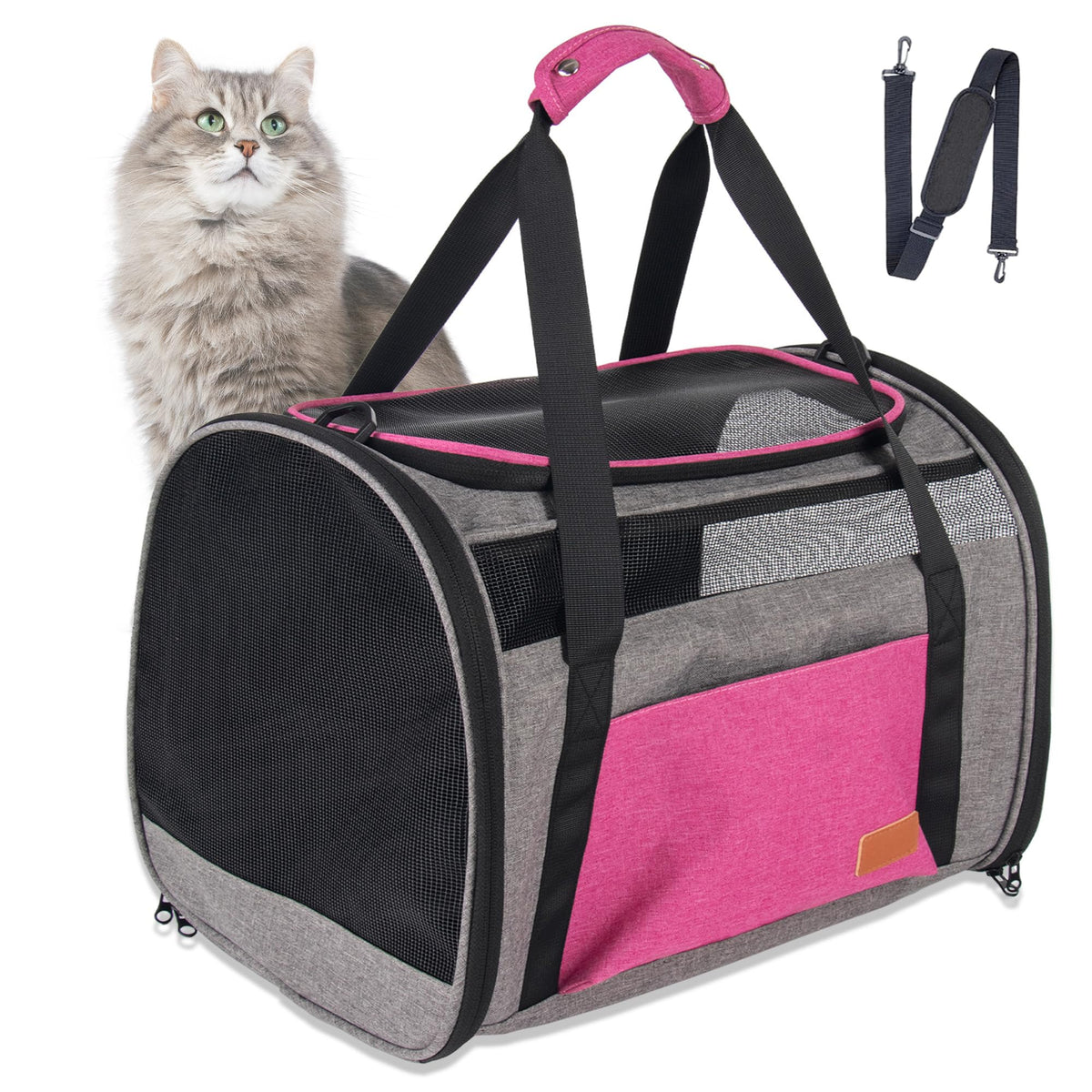 Large Cat Carrier For 20 Lbs Pets - Soft Sided Breathable Mesh Travel Carrier, Airline Approved, Washable For Small Dogs Puppies