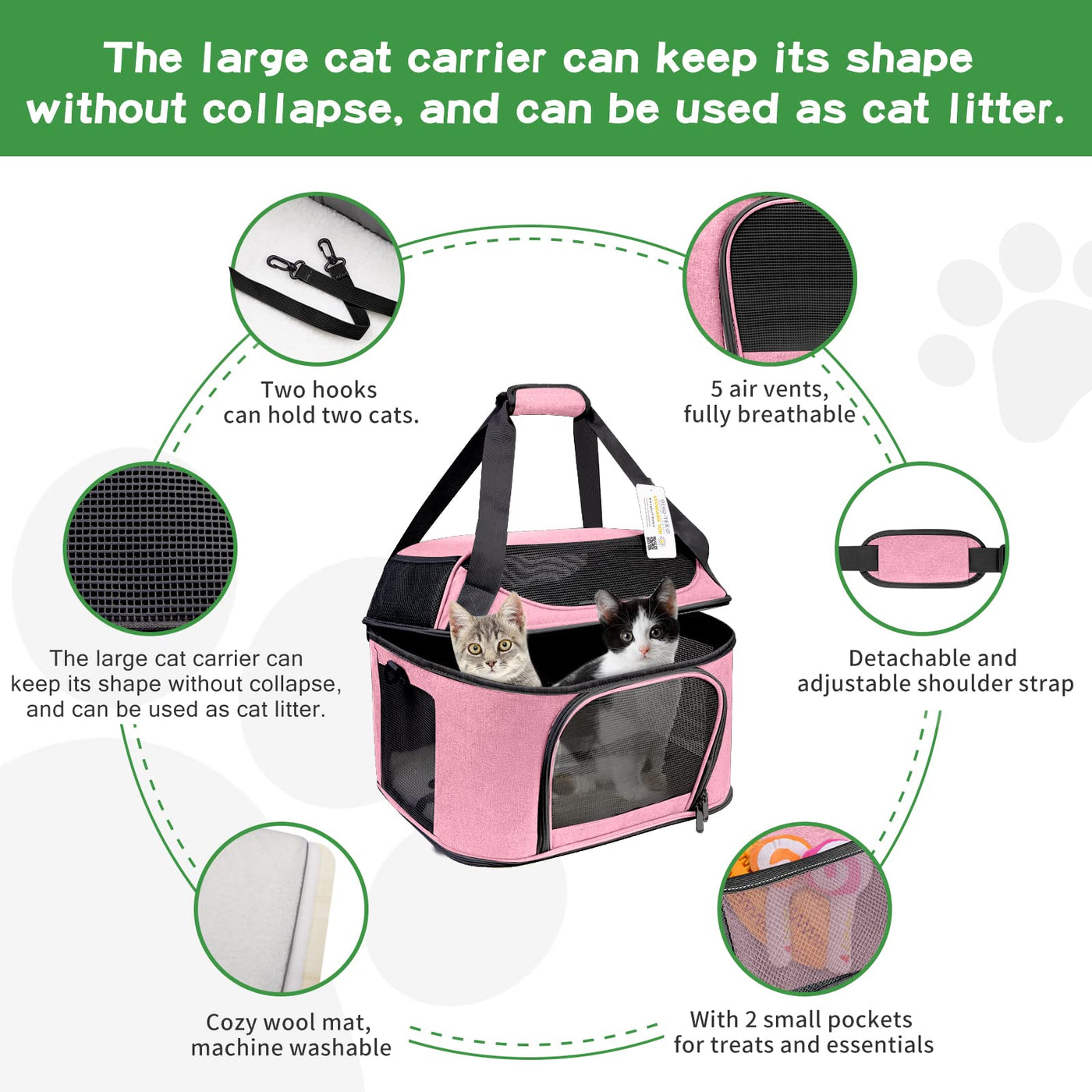 Large Cat Carrier Pet Carrier, Oeko-Tex Certified Soft Side Pet Carrier For Cat, Small Dog, Collapsible Travel Small Dog Carrier, Tsa Airline Approved Cat Carrier For Cats 20 Lb,Pink