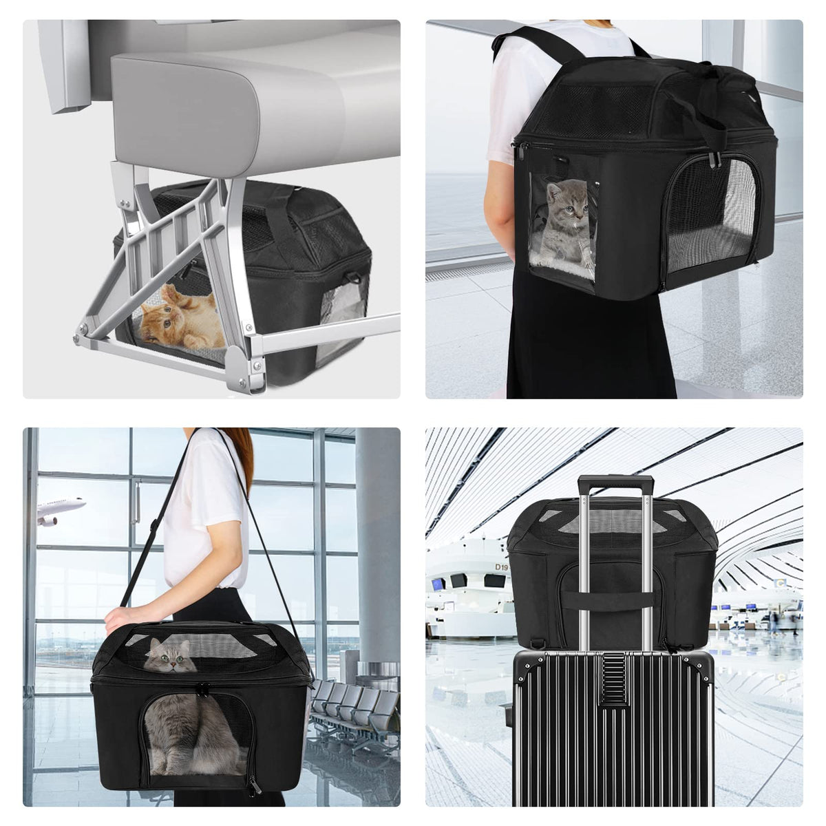 Q: Is the cat carrier airline approved?A: Yes, this cat carrier is TSA airline approved, allowing you to travel with your pet on most airlines without any issues.