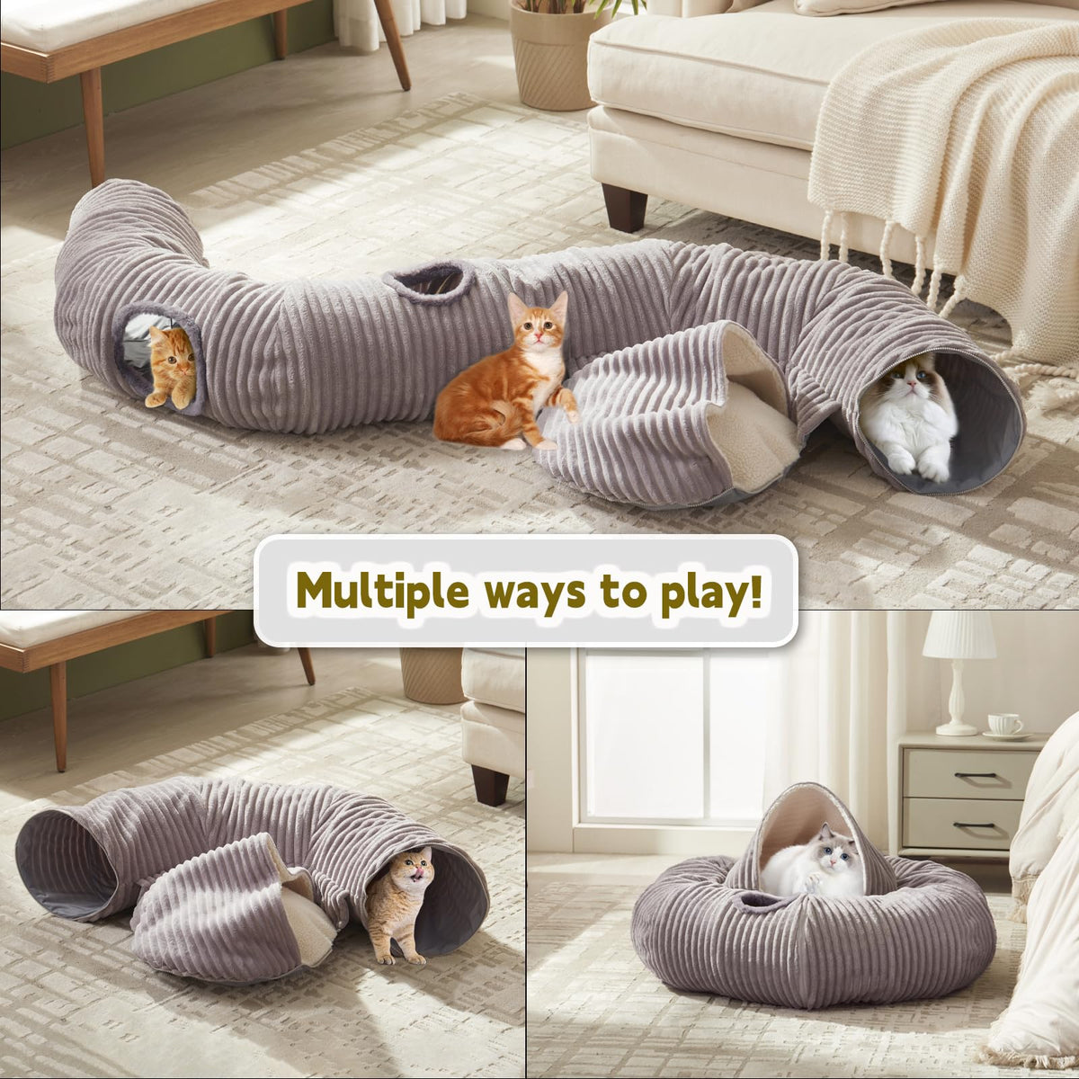 Large Cat Tunnel Bed for Indoor Cats,Cat Donut Tunnel Toy with Washable Circle Cushion,Blackout Tent, Multifunctional Playground Toys Hideplace for Kitty, Kitten, Rabbit,Ferret