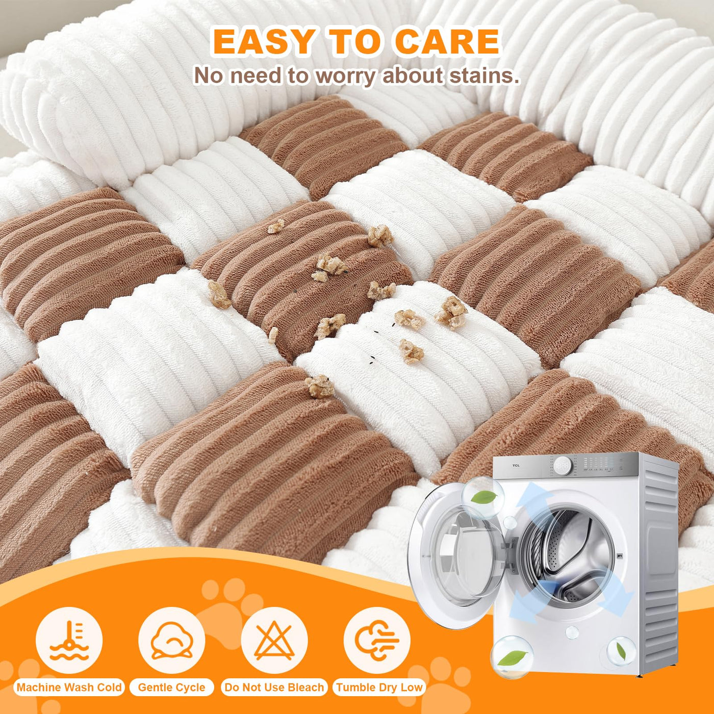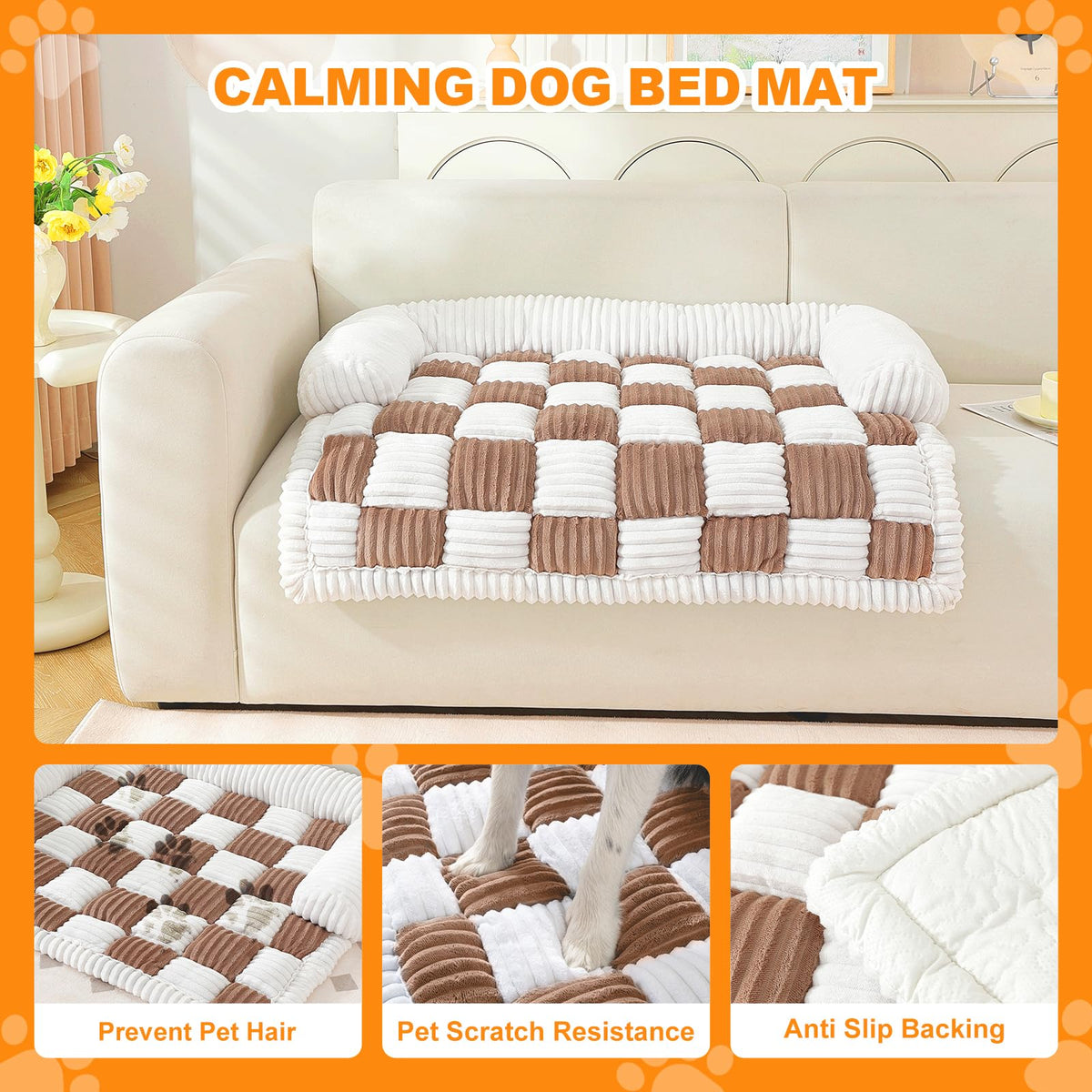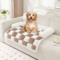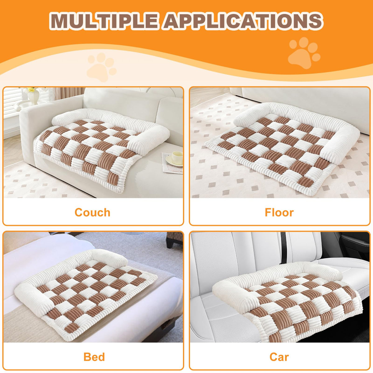 Large Dog Bed For Couch, Washable Pet Bed Mat, Checkerboard Cozy Plush Sofa Mat, Pet Couch Cover Furniture Protector For Sofa, F