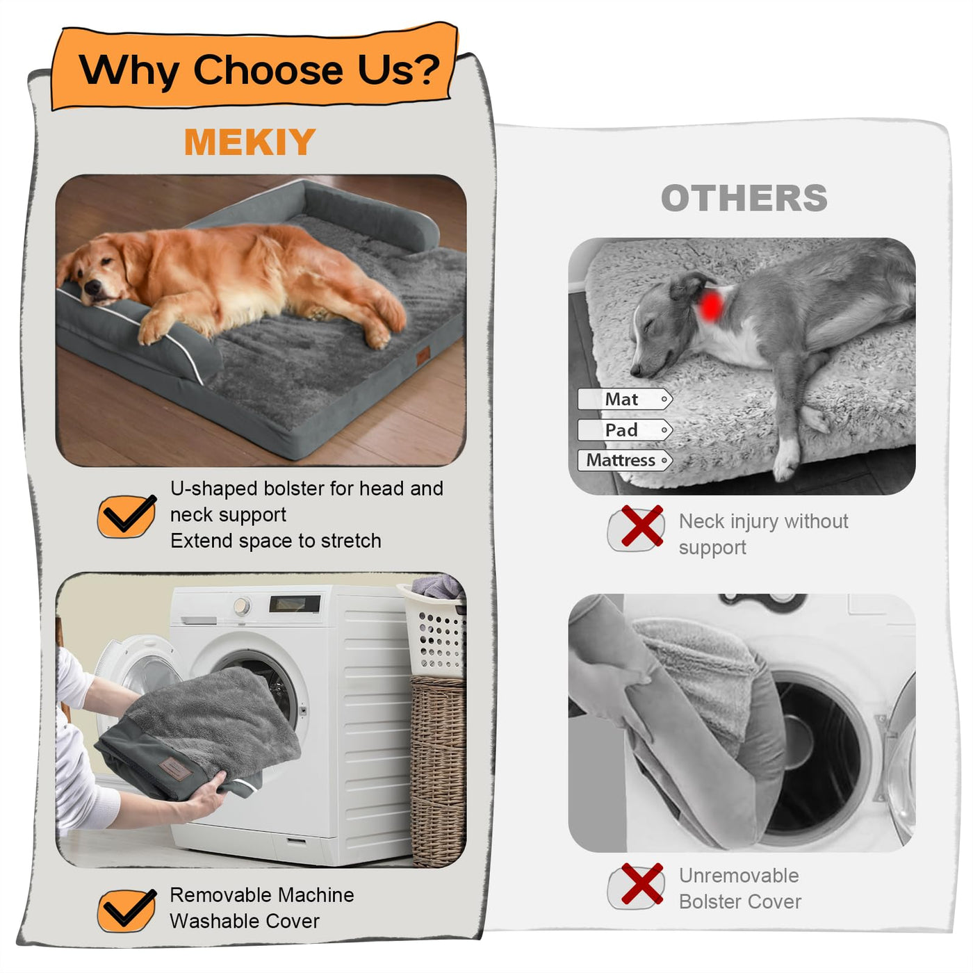 Large Dog Bed Orthopedic Washable - Beds Bolster - Extra Xl Xlarge Big Dogs - Memory Foam Couch Sofa - Waterproof With Removable Cover - Dark Grey Dog Bed