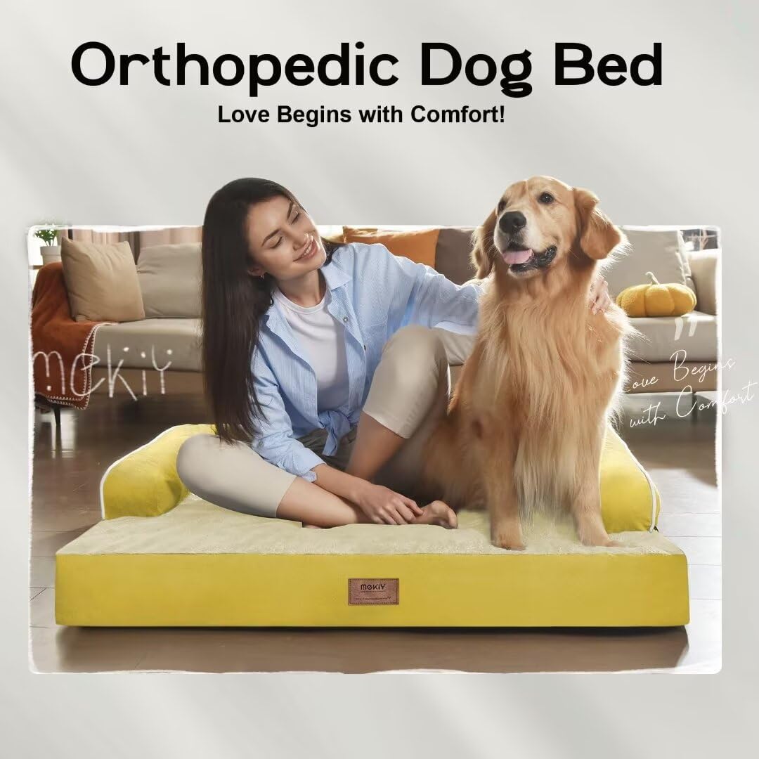 Large Dog Bed Orthopedic Washable - Couch Sofa - Xl Large Big Dogs - Beds Bolster Pet - Memory Foam - Waterproof With Removable Cover - Ginger Yellow Dog Bed