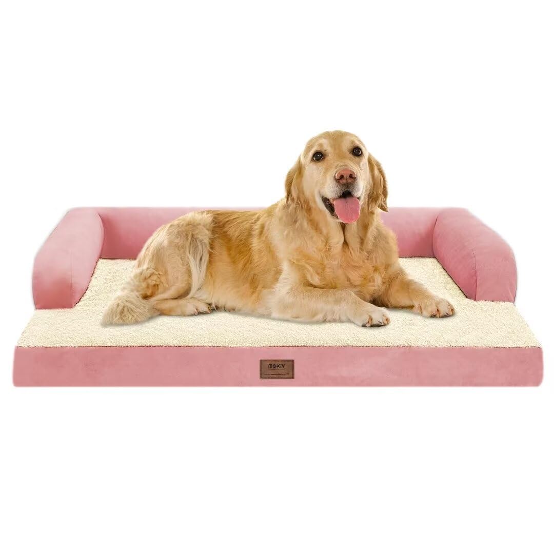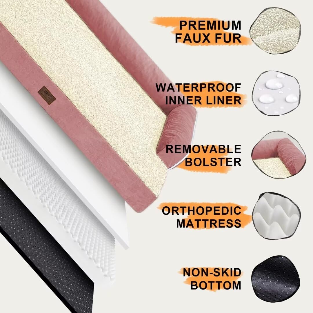 Large Dog Bed Orthopedic Washable Extra Pink Xl Xlarge Big Dog Bed With Washable Bolster & Memory Foam Couch Sofa - Waterproof With Removable Cover